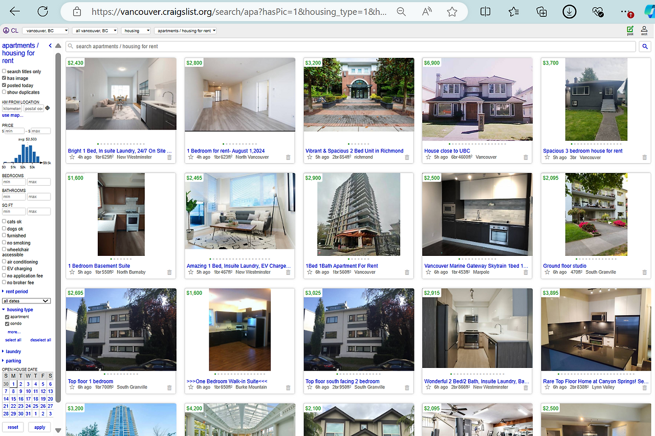 일이 끝나고 나면 퇴근하는 길 버스에서, 스카이 트레인에서, 그리고 집에 도착해서도 크렉스리스트에 올라온 포스팅을 보고 괜찮아 보이는 곳들은 이메일을 보냈다.