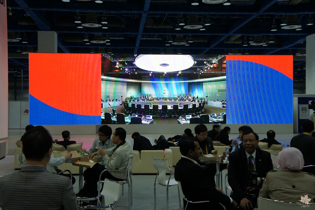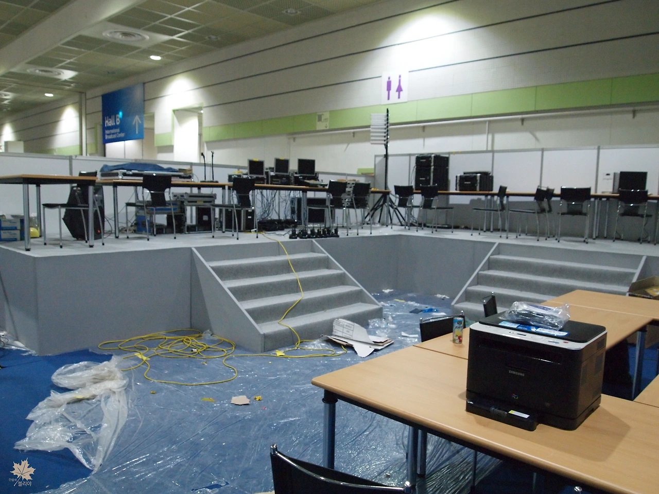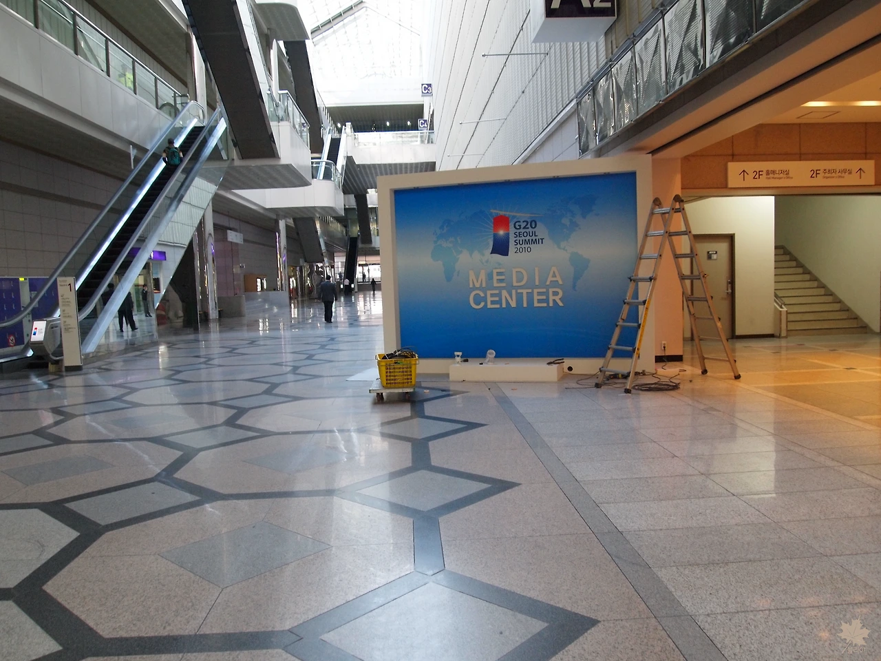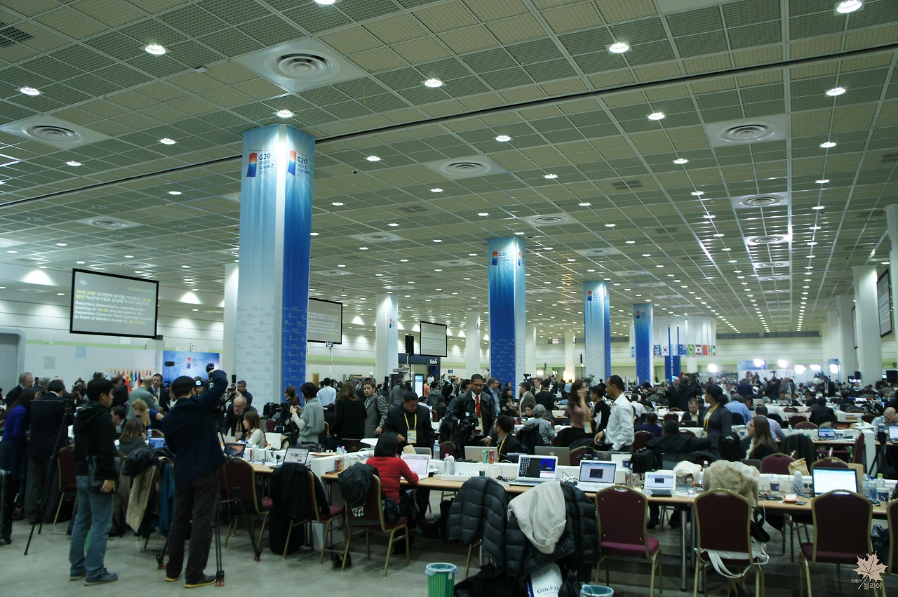 코엑스 1층 전시장 전체에 65개국에서 모여든 기자단 4천여 명을 위한 미디어센터가 11월 8일부터 12일까지 5일간 운영되었다. 10월 말부터 설치작업이 시작되었고 오픈 전 수일간 기술 점검과 리허설을 실시했다. 수천 명을 수용할 프레스센터에 전기 공급은 원활한지, 인터넷은 트래픽이 생기지 않을지, 영상 장비는 문제가 없는지, 3층 정상회의장에서 송출하는 영상이나 통역이 미디어센터까지 차질 없이 전달되는지를 보며 수정할 부분들을 보완해 나갔다.
