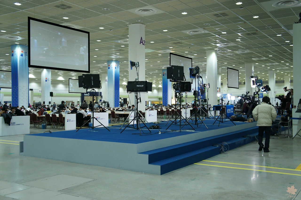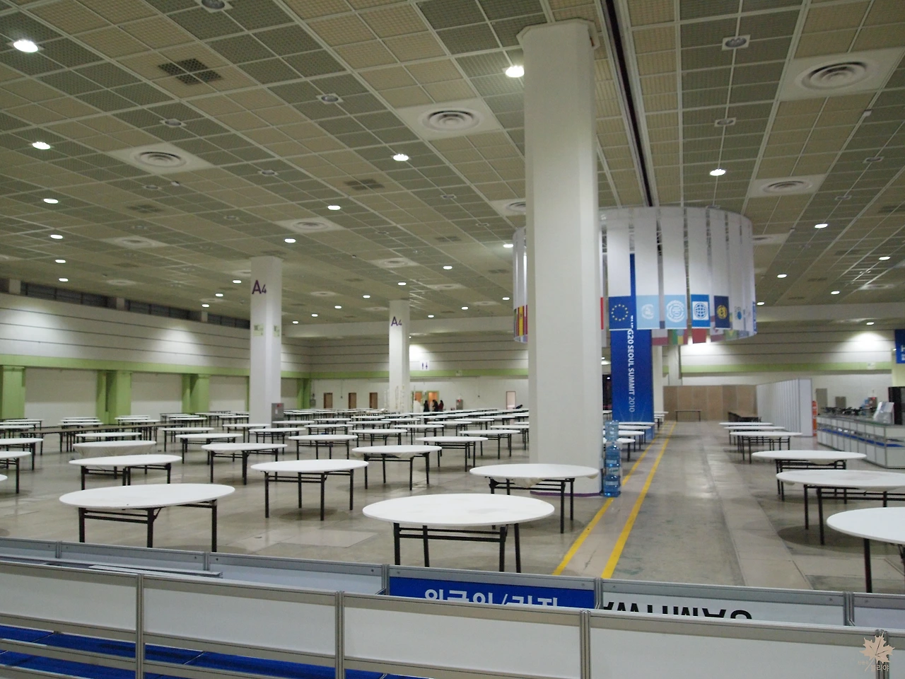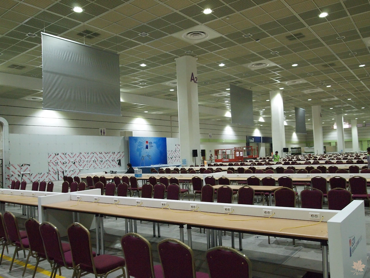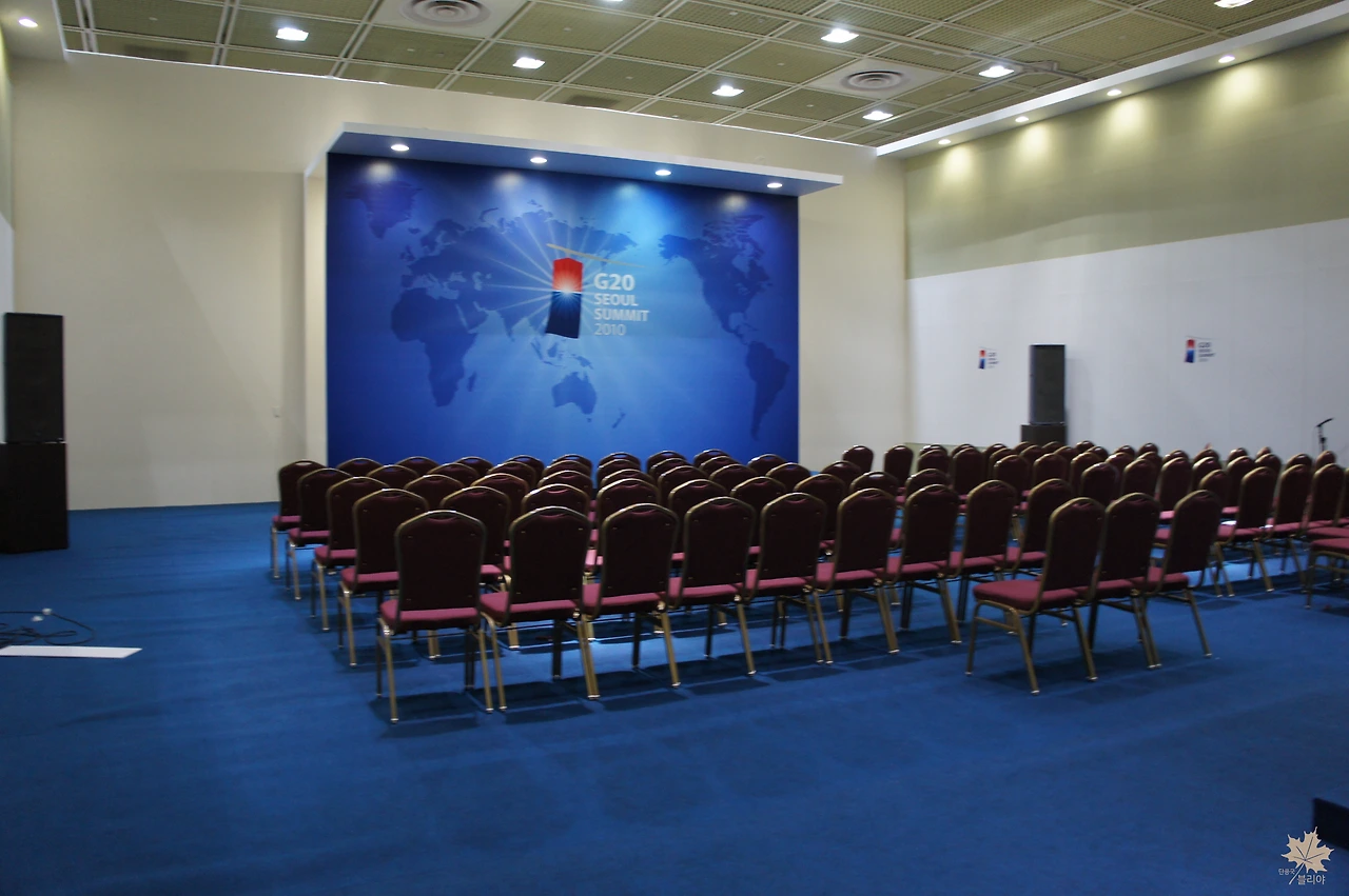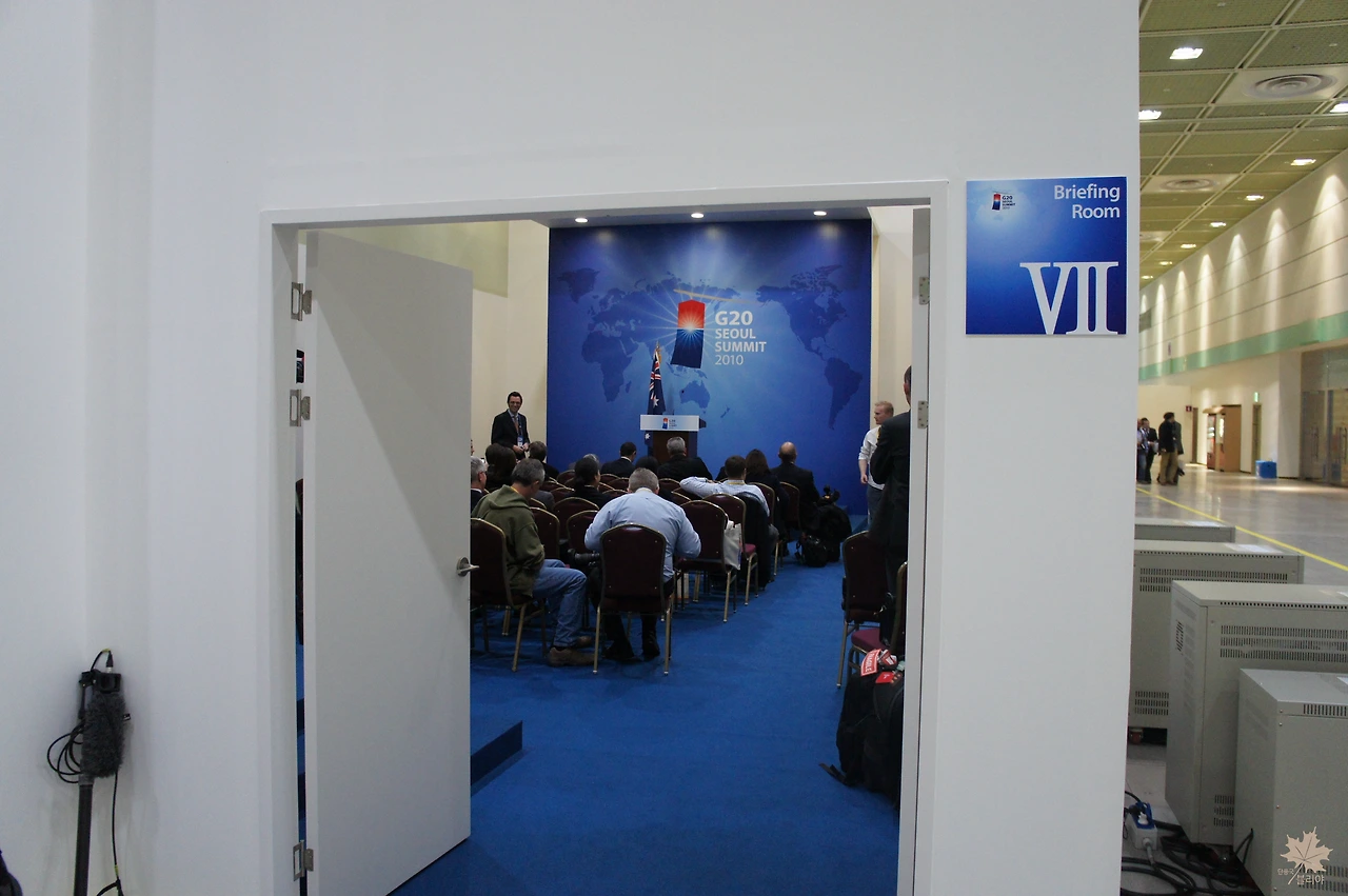 정상회의는 코엑스 3층에서 진행되었는데 국별 브리핑룸은 정상회의장과 연결되어 3층에 조성되었다. 브리핑룸의 뒷공간은 정상, 앞공간은 기자단이 이용할 수 있도록 동선을 분리했다.