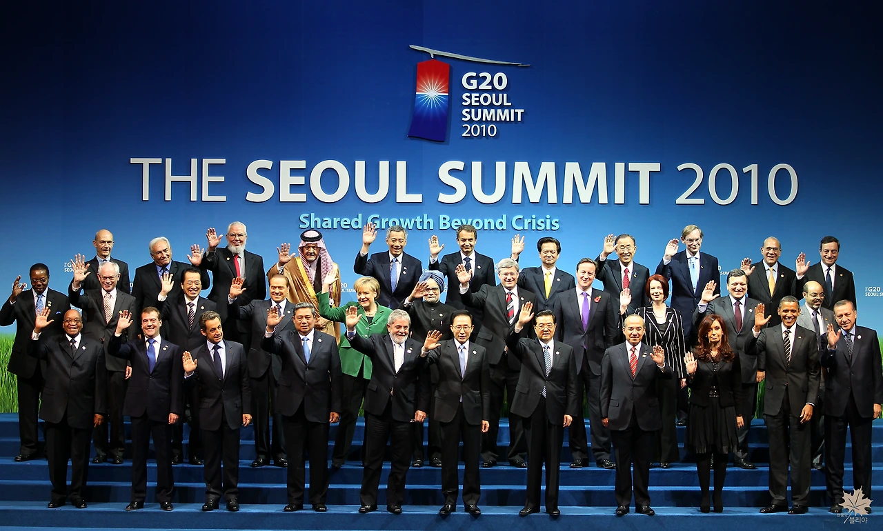*원래 장관급 회의였던 G20은 2008년 세계 금융 위기를 계기로 미국 워싱턴 DC에서 최초로 정상급 회의로 개최되었고 영국 런던(2009년 4월), 미국 피츠버그(2009년 9월), 캐나다 토론토(2010년 6월)에 이어 2010년 11월 아시아 최초로 대한민국 서울에서 개최된 후 2011년부터 연례화되었다.
