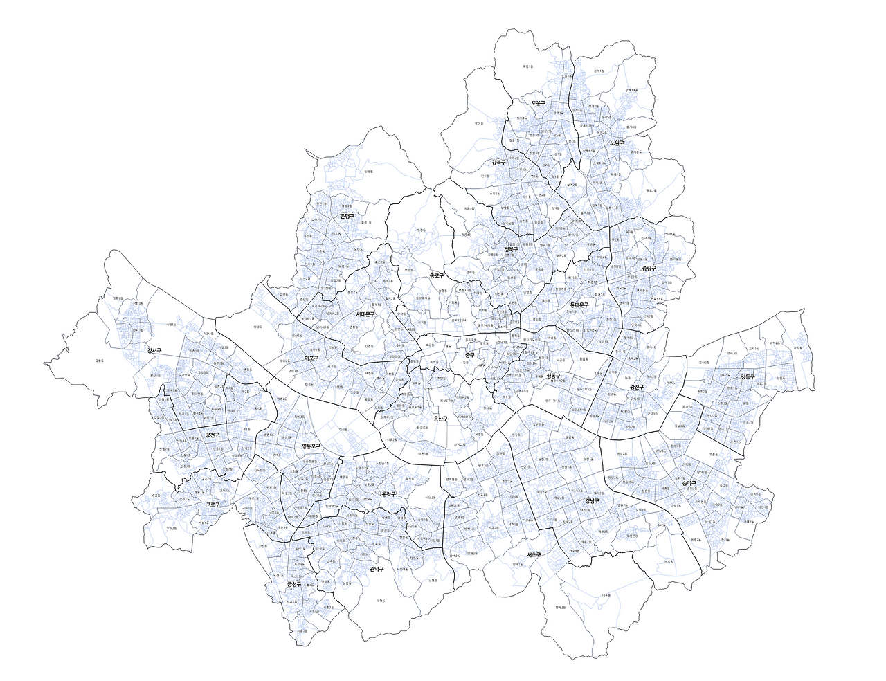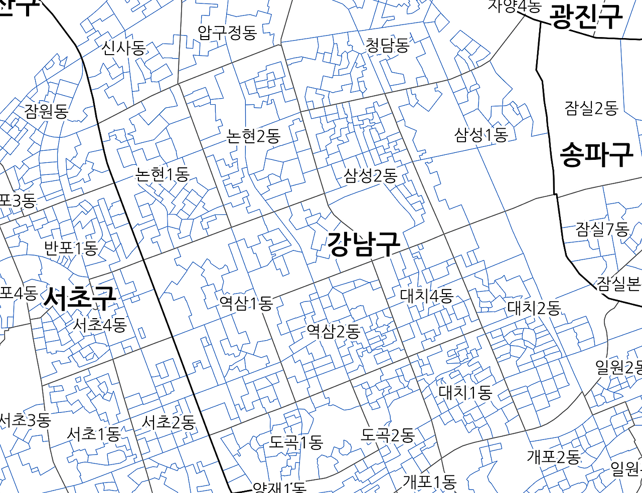 <서울시 집계구 지도, 강남구를 확대한 집계구>