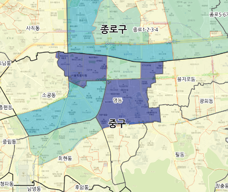 이번 글에서 설명하고자 하는 부분은, 위의 지도처럼 속성 값이 높은 지역과 낮은 지역을 시각적으로 명확하게 구분하여 전달할 수 있는 방법에 관한 것입니다. 공간을 런던이 아닌 서울로 옮겨서, 통계청에서 발표한 2012년 말 기준 집계구별 사업체종사자(직장인구)를 기준으로 맵핑해보겠습니다.