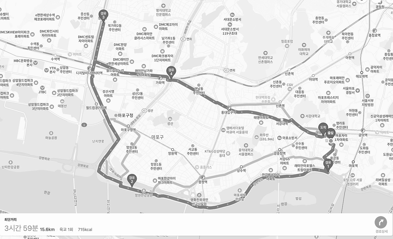정말 순수했다. 목표는 없었다. 얼마큼을 걷겠다, 내 몸무게의 몇 kg을 빼겠다... 심지어는 이렇게 글을 쓰게 되리라고는 전혀 생각지도 못했다. 그저 1년을 미친 듯이 걸으면 무엇이 변해 있을까가 너무 궁금했다. 그래서 시작했고, 정말 미친 듯이 걸어왔던 것 같다. 이제 1년이 되기까지 4개월이 채 남지 않았다. 기록으로 보자면 2000km가 훌쩍 넘는다. 이때까지도 나는 무엇이 내게 주어지고 있는지, 변화되고 있는지 감조차 오지 않았다.