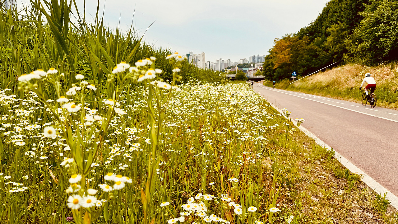 안양천은 안양에서 시작하여 광명, 시흥 그리고 금천으로 흘러 성산대교 한강으로 유입된다. 하천의 길이가 총 32km라고 하니, 성산대교에서 집까지 대략 7~8km인 것을 보면 앞으로 남은 거리가 충분히 짐작이 되었다. 작년 7월 즈음, 문래동을 탐방하면서 안양천을 처음 걸어 본 적이 있다. 저녁 시간대였는데, 아직도 그 백합꽃길이 기억에 난다. 안양천은 봄이면 벚꽃으로 군락을 이루고, 7월이면 백합이 온 길에 향기를 내려 밤이면 천국길이 따로 없다. 오늘은 그 아름다웠던 길이, 점점 고행길로 바뀌어 가고 있었다.