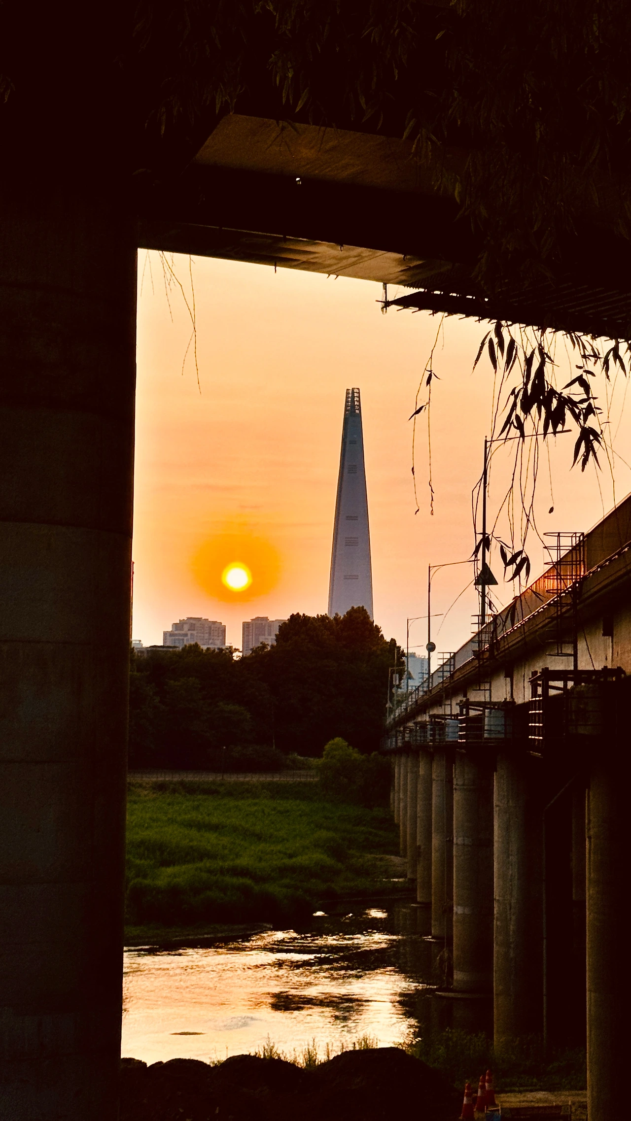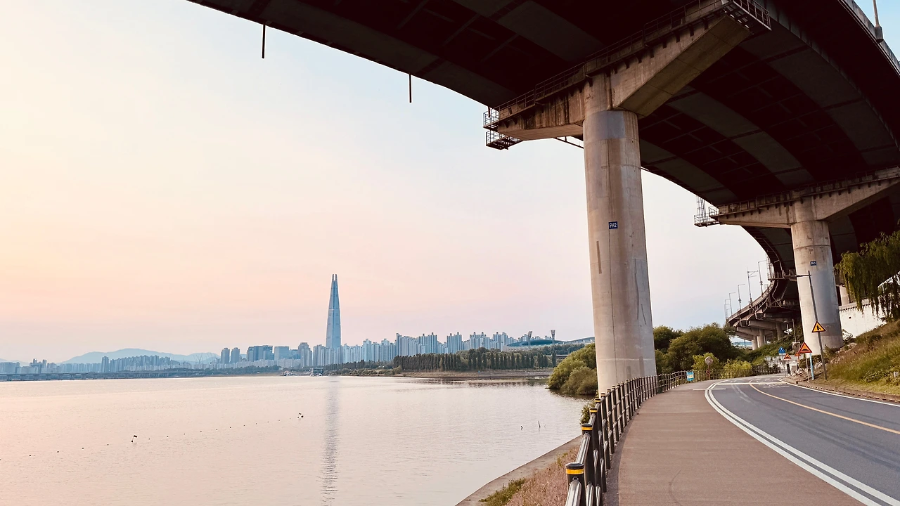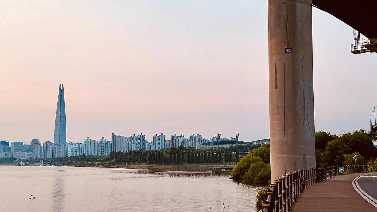 저 앞에 잠실 월드타워가 보인다. 영동대교를 지날 때쯤 다시 어느 방향으로 가야 할지 고민이 되었다. 새벽 5시, 앞으로 15시간 이상을 더 걸어야 한다. 이대로 팔당대교까지 갈까 하다가, 잠실종합운동장의 ‘탄천’을 지나면서, 탄천의 발원지를 찾아가 보면 어떨까 라는 생각이 불현듯 들었다. 검색을 해 보니, 그 시작이 용인 에버랜드 근처로 나온다.