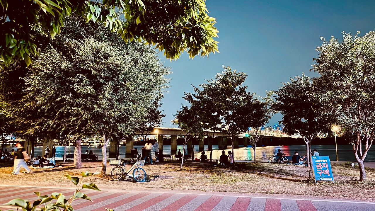 여의도 한강 둔치에는 돗자리를 깔고 쉬는 사람, 운동하는 사람들이 종종 보였다. 밤중이라 해도 국회의사당은 해처럼 밝았고, 땀 흘리며 운동하는 사람들의 표정도 한결같이 맑았다. 한강공원 포플러 나무 사이로 걷는 길이 그렇게 좋다. 졸린 기운이 살짝 오기는 했지만 막상 걷다 보니 발걸음은 가벼워졌다. 아직은 모든 게 괜찮았다.