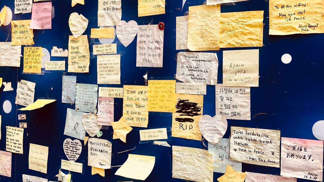 아직도 그 골목 입구에 붙어 있던 수많은 포스트잇 쪽지들이 기억난다. 가족과 친구들을 애도하던 글들은 차마 읽을 수 없는 문자였고, 나는 스스로 맹인이 되었다.