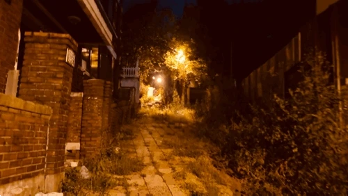 비어있는 주택들 어느 한쪽에서 오래된 소리가 들려왔다. 끼익 소리가 고양이 소리 같기도 하고, 아니면 누군가 무단침입하여 살살거리고 있을지도 모를 일이다. 아니면, 오갈 데 없는 귀신이 남아 있던가.