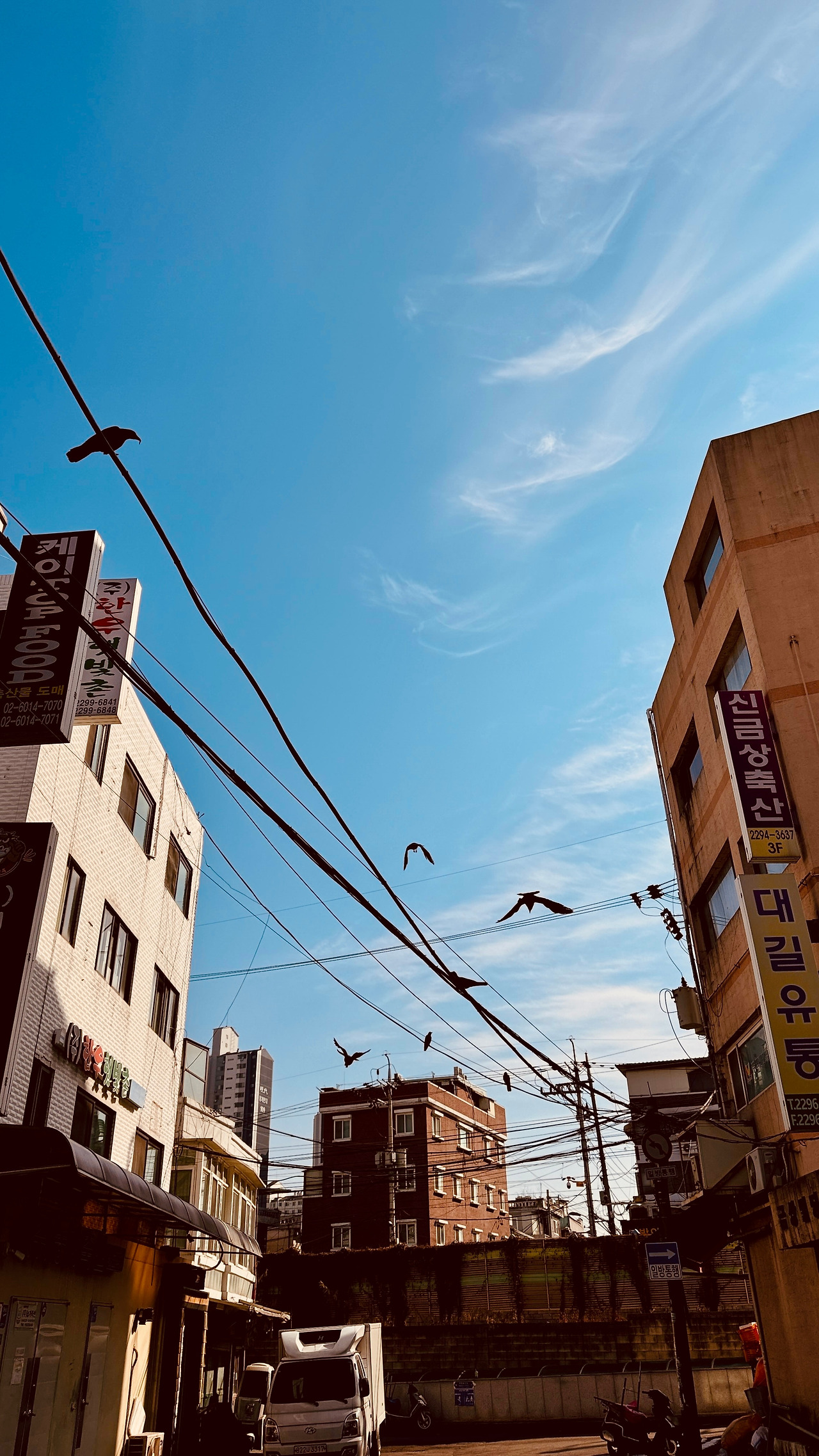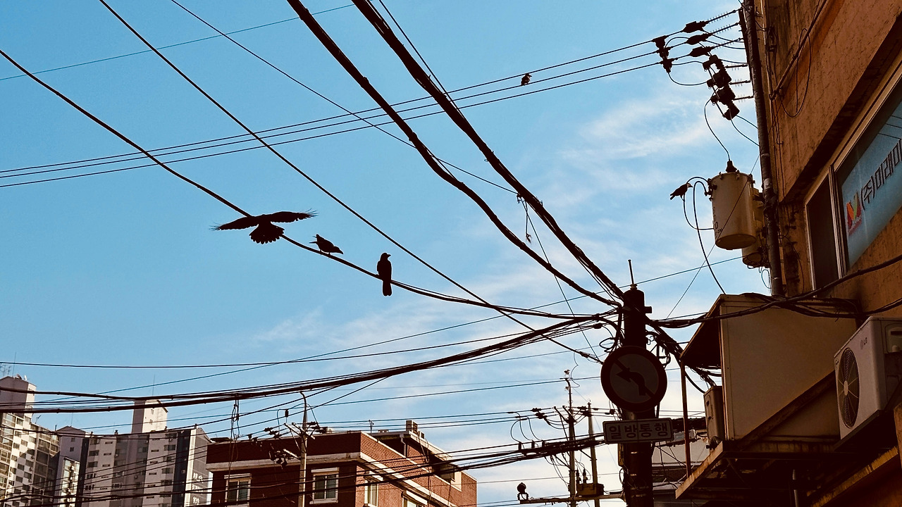 다시 마지막 바퀴를 돌고 나오니, 하늘 전선 위에서 까마귀 떼가 ‘후드득’ 날아간다. 비릿한 축산물 냄새가 마을 전체를 휘감고, 저 새들은 이미 이곳의 터줏대감이다.