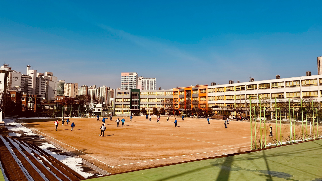 길을 따라 내려와 다시 밀집되어 있는 주택가로 들어간다. 저 앞으로 ‘동명초등학교’가 보이고, 운동장에는 젊은 무리가 축구 경기를 한다. 자세히 보니, 늙은 어른과 젊은 어른이 한데 뒤섞여 있다. 아침 해가 쨍하니, 그들의 움직임은 모두가 20대이다. 넉 놓고 보는데, 내가 다 에너지가 찬듯한 느낌이다.