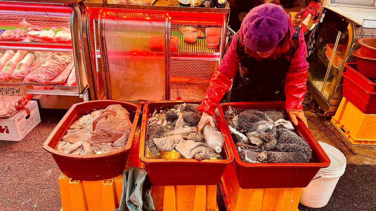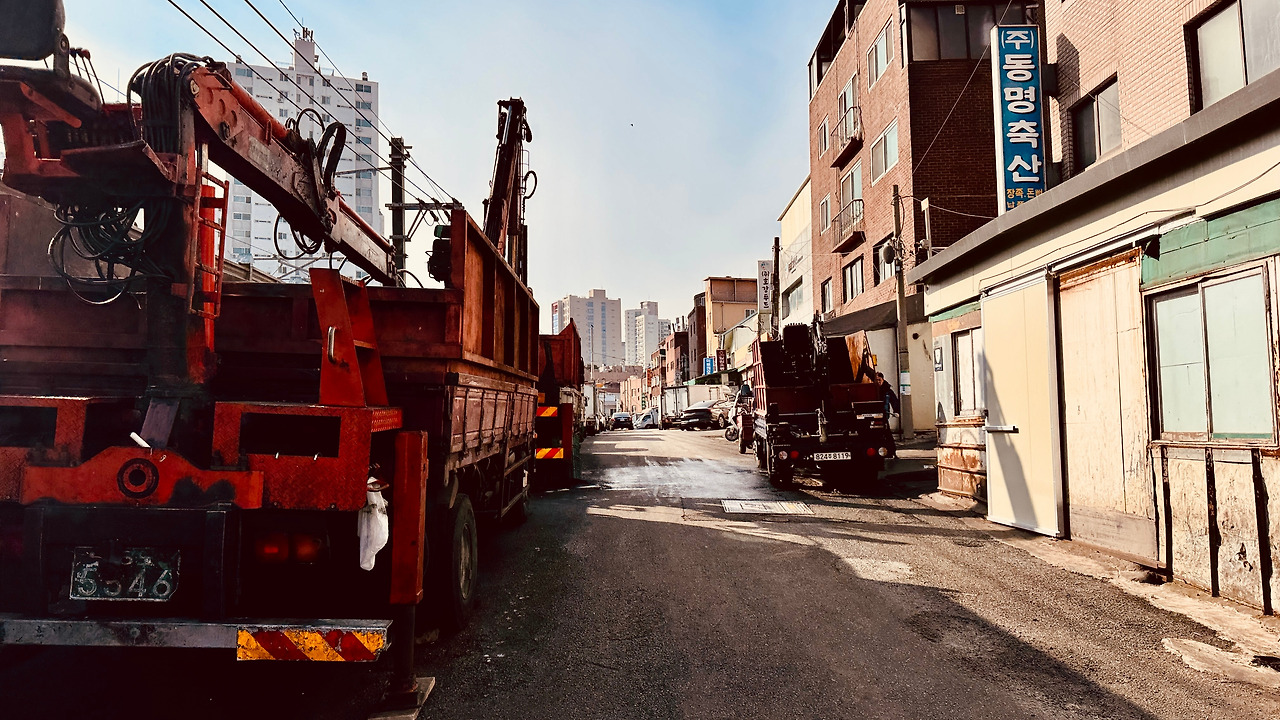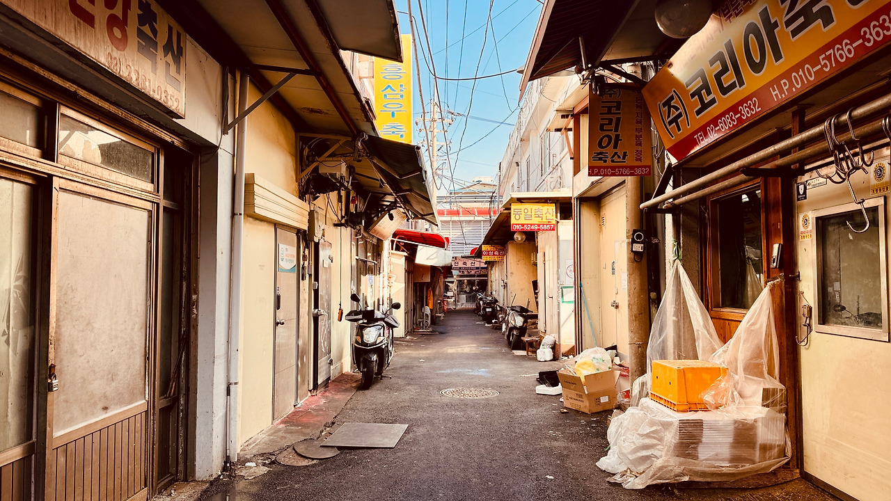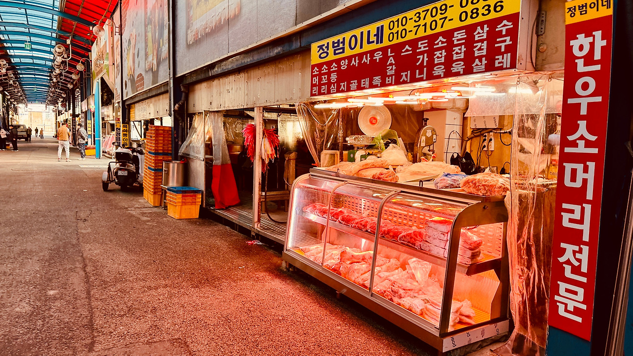 시장뿐만 아니라 주변 200~300m 정도 지역 전체에 소 비린내가 퍼져 있다. 이곳에서 생활하는 분들의 민원이 종종 제기되는 것도 이해가 된다. 특히 한 주민이 올린 글을 보니, 학교 앞이나 아파트 근처에 입점한 가공 업체에서 소 뼈를 썰고, 돼지머리를 걸어두는 등의 작업이 이루어져 아이들 학업에 영향을 준다고 한다. 하지만 이런 구조가 쉽게 바뀌기는 어려워 보였다.