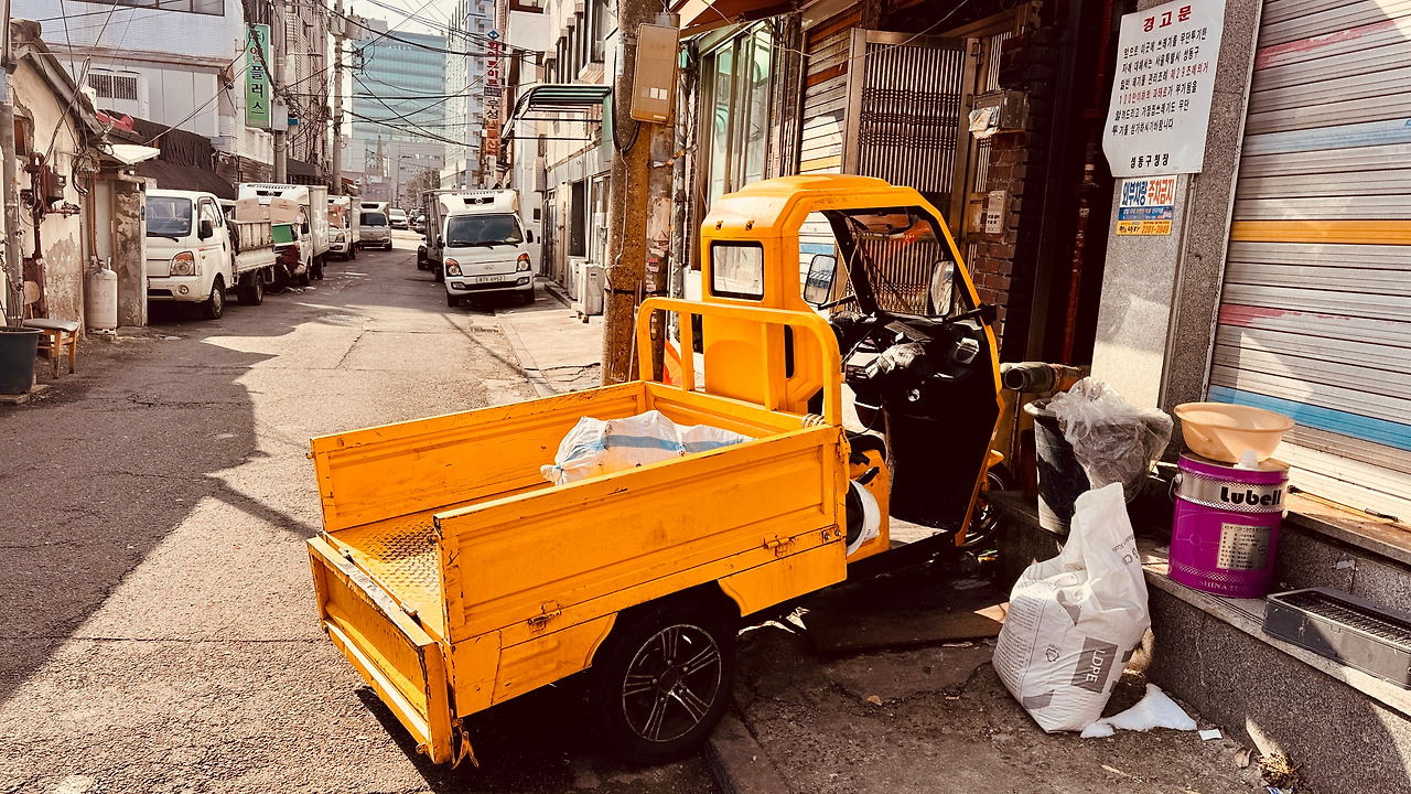 시장 근처를 둘러봐도 특색 있는 장소는 잘 보이지 않았다. 시장 뒤쪽으로 기찻길이 보인다. 왕십리역으로 이어지는 경의중앙선 철도이다. 그 기찻길옆 골목을 따라 지역 주민보다 더 심한 동네 양아치로 걸었다. 누가 보면 일하러 나온 직원 같기도 하다. 코 앞의 축산물 이동을 위해 고안된 특수차량이 생경하다.