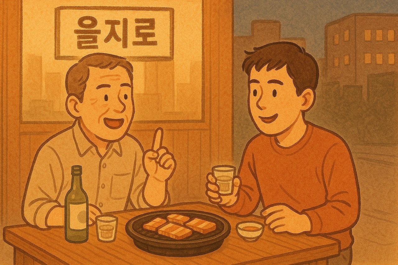 내가 좋아라 하는 꼰대 스타일 그이는, 을지로 회사 앞에서 삼겹살에 소주 한잔 걸치고 나와서는 괜히 잘 먹은 고기 품질 타령이다. 사드렸으면 맛있게 드시기나 하시지, 고기가 푸석하다는 등 괜히 딴지다. 그러고는 마장동 한우에 침도 안 바르고 칭찬 일색이다. ‘아니, 삼겹살 먹고 한우하고 비교하는 게 맞나?’ ㅋㅋ.