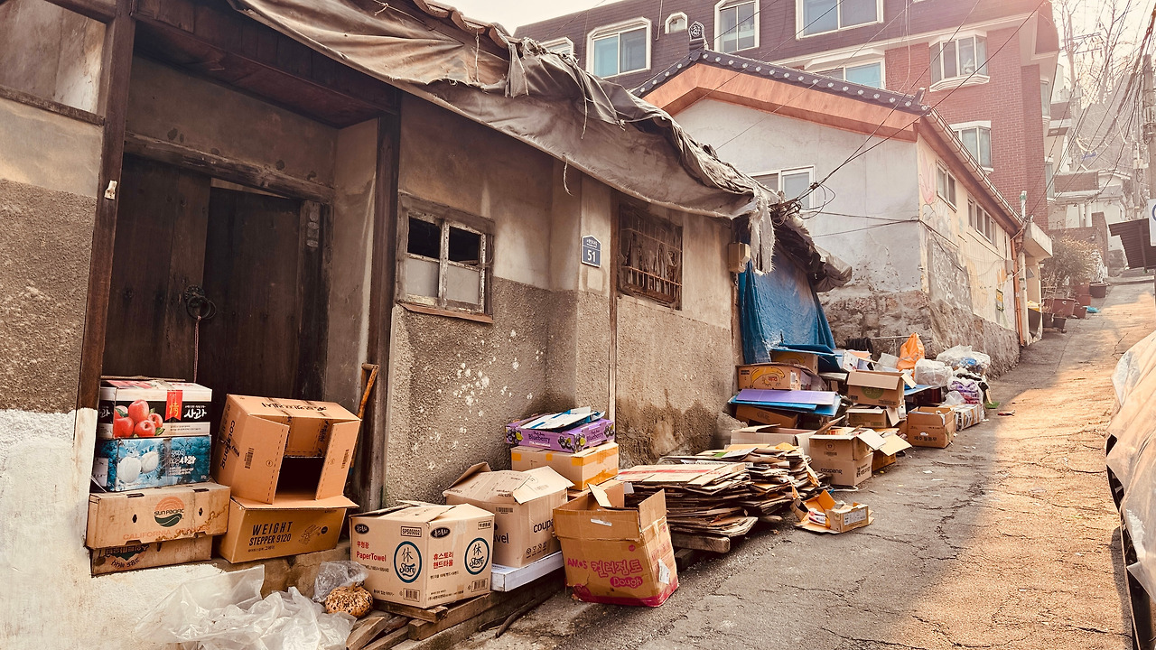 옛집과 헌 집이 뒤섞여, 여기도 서울 한복판이라고 속닥댄다. 마지막 달동네를 이루고 있는 듯, 이곳저곳 삶의 자욱이 가득하다. 누군가 떠난 집은 남겨진 쓰레기로 기억을 지우고, 남은 자들은 여전히 흔적을 쌓고 있었다.