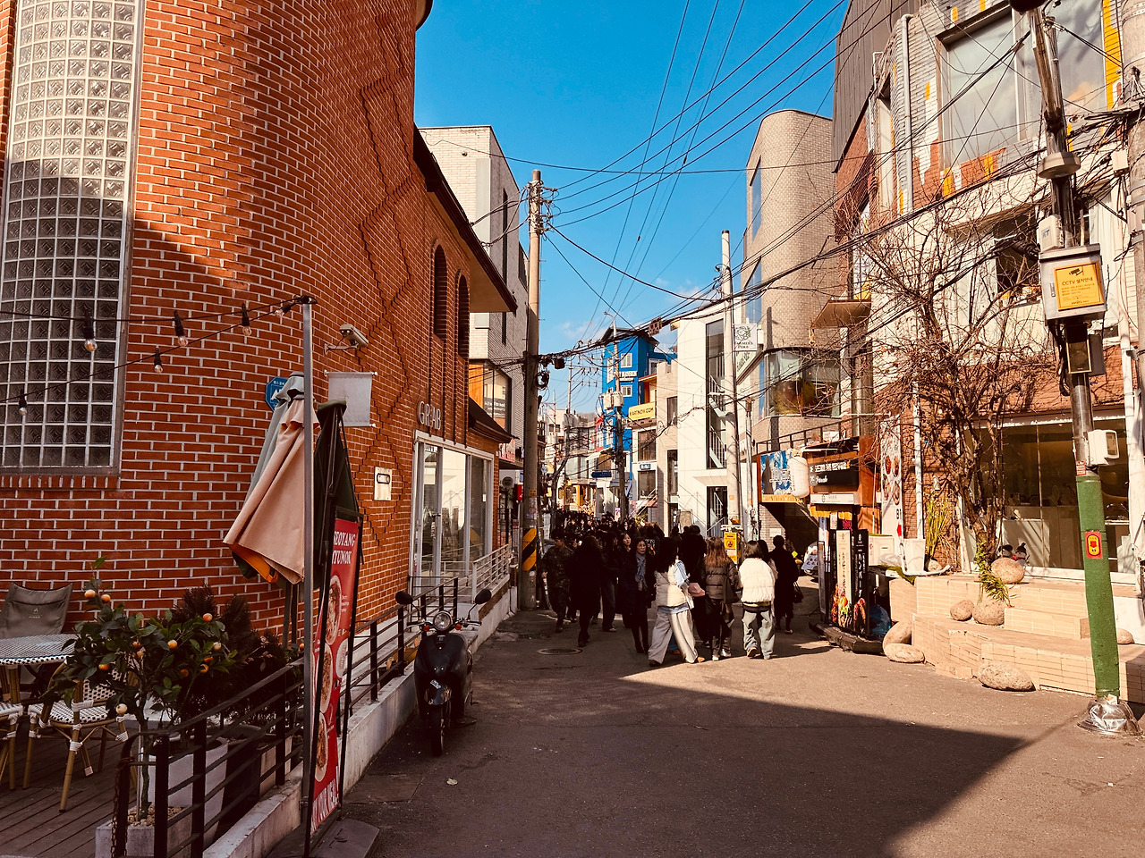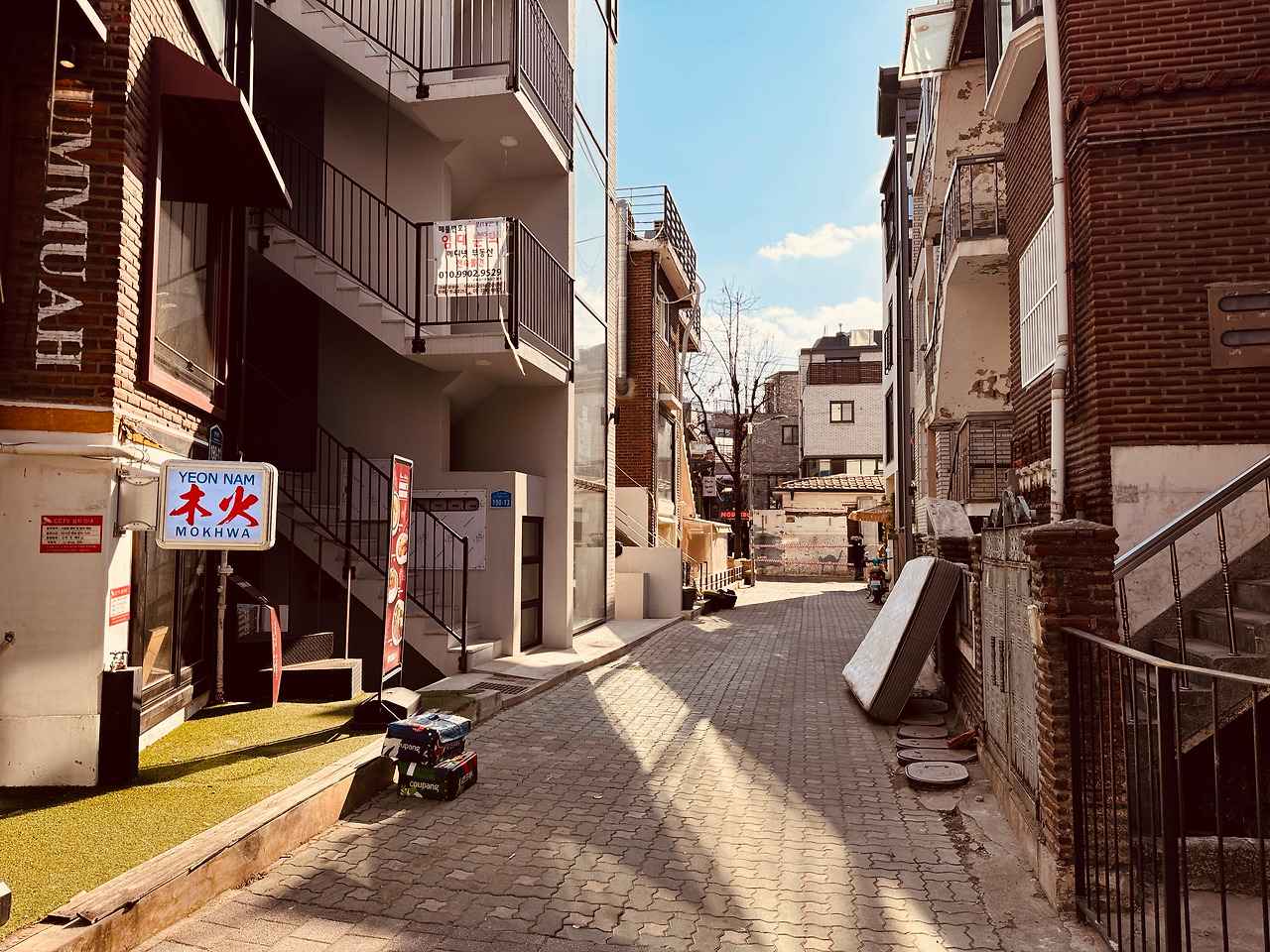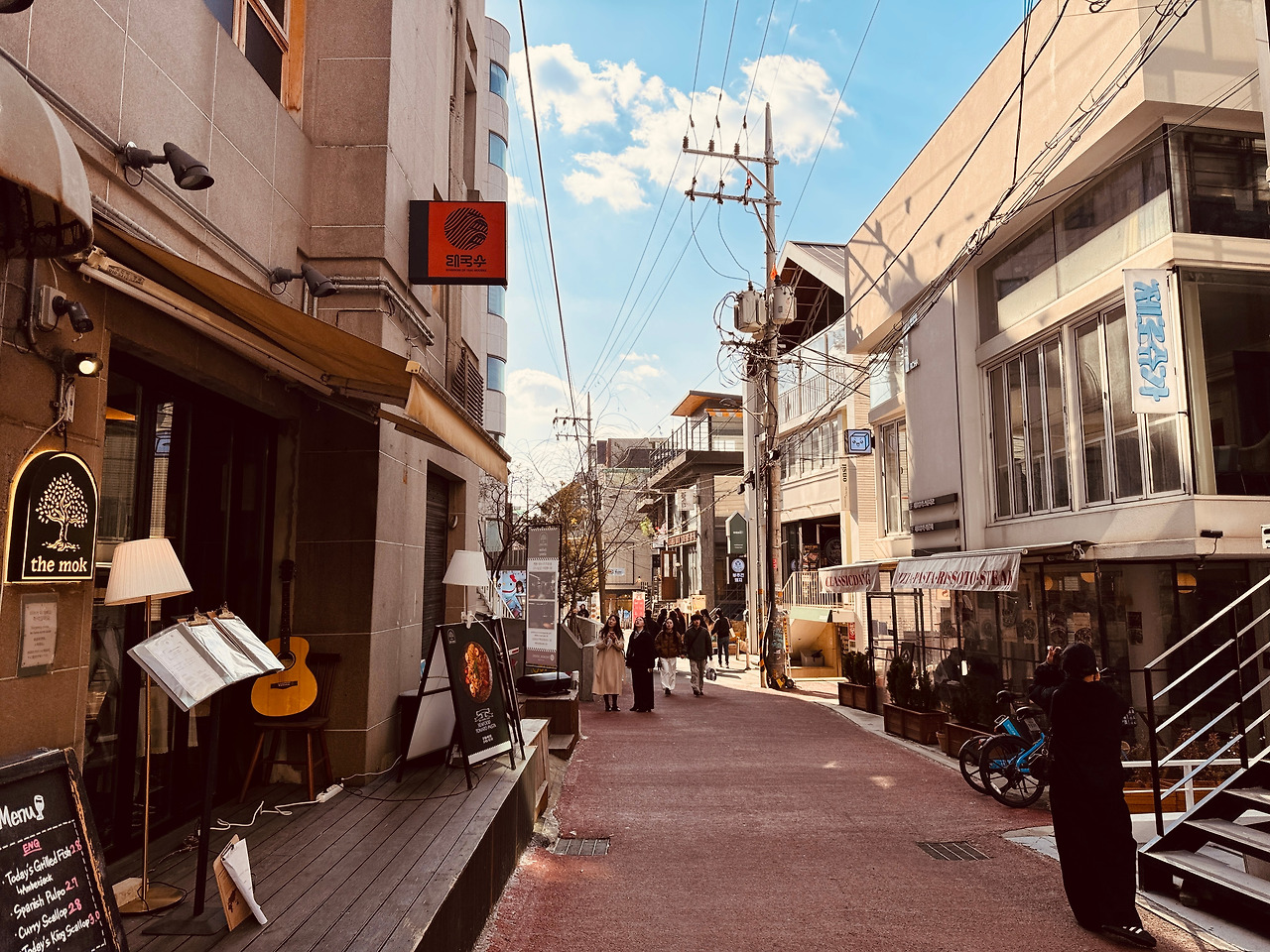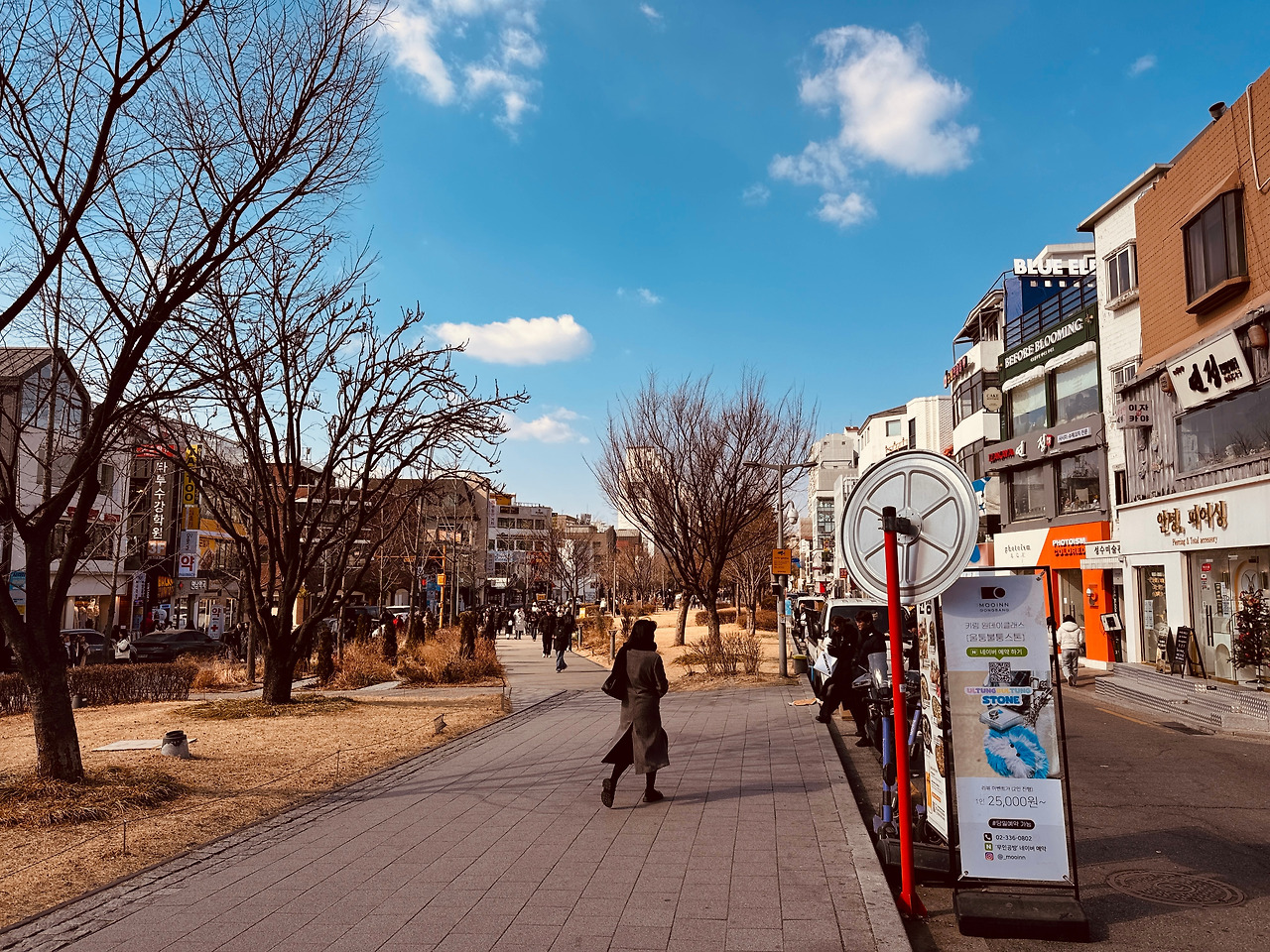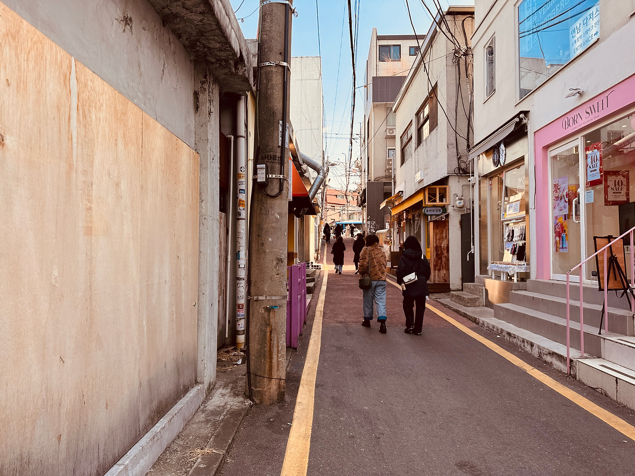 젊은이들은 삼삼오오 팔짱을 끼고 걷고, 나는 혼자 두리번거리며 걷는다. 이렇게 대조되는 모습에도 아무도 신경 쓰지 않는다. 그것이 슬플 새도 없이 감성 뿅뿅 묻어나는 골목에 멍 빠진 채 걸었다.