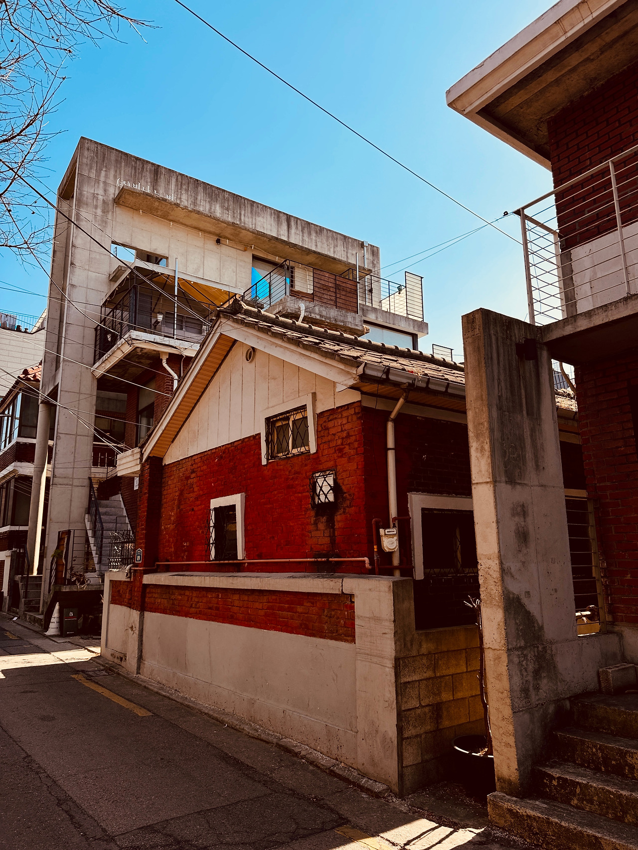 연남동의 핫플레이스를 지나, 조금 더 떨어진 모래내 방면과 동교동 방향으로 걸었다. 이곳은 홍대입구역 근처보다 복잡하지 않고 조용하다. 집들은 옛집과 신축 건물이 조화를 이루어 다채롭다. 걷다가 마주친 한 채의 빨간 벽돌집은, 내 눈을 몽땅 자기 모습으로 담는다. 낡았지만 선명하고 몇 줄 안 남은 내 머리 기억의 공간에 자기 이름을 새긴다.