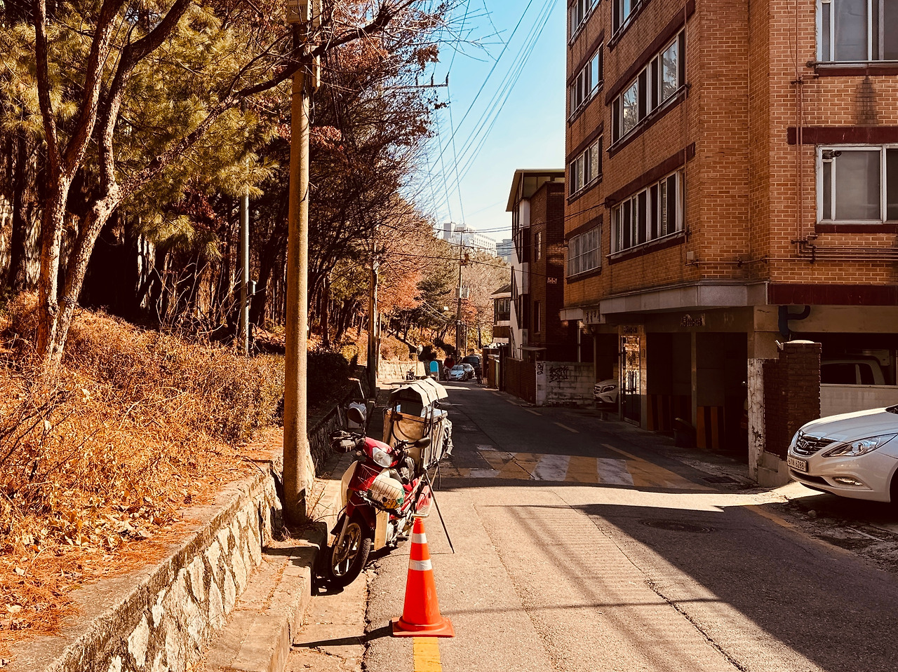 길을 걷다 보면 여기저기 동남아시아 음식점들이 눈에 띈다. 특히 '툭툭' 오토바이가 세워진 골목은 마치 태국이나 베트남에 와 있는 듯, 정취가 물씬 풍긴다. 짧은 거리에도 강렬한 인상을 주니 한참을 본다. 문틈으로 슬핏 보이는 직원들은 나에게 좋은 기운으로 다가온다.