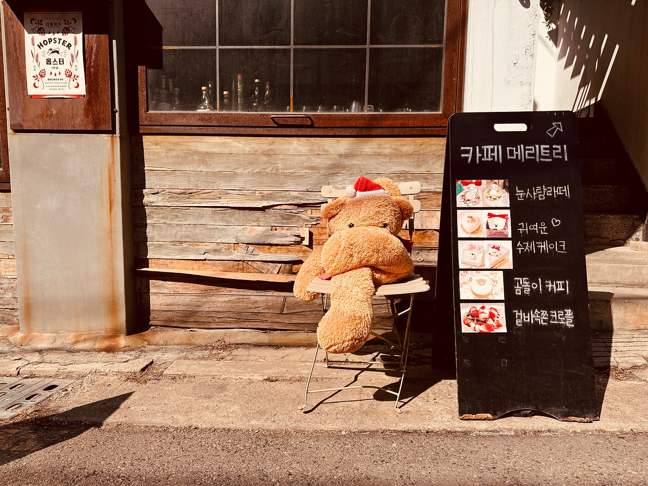동교동 경계를 따라 걷다 보면, 여기저기 옛 ‘화교촌’의 흔적을 볼 수 있다. 하얗게 칠해진 낡은 건물에서 중국요리 냄새가 스멀스멀 기어 나와 콧속으로 들어가 미각을 자극한다. 크기는 작은데도 대기줄은 저만치다. 큰길과 조금 작은 길, 다시 골목을 지나 걷다 보니 ‘곰’ 여러 마리가 식당 의자에 앉아 영업 중이다.