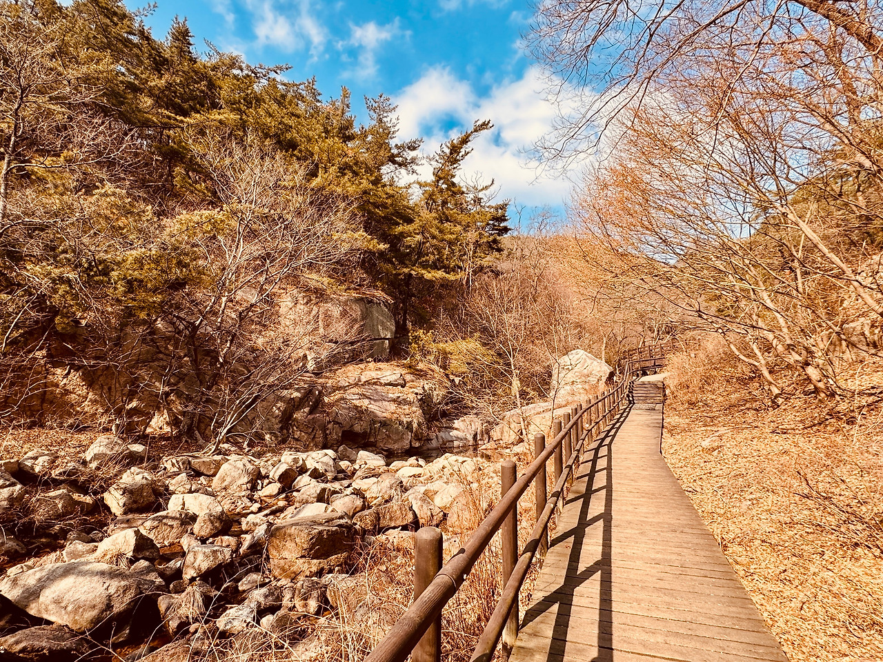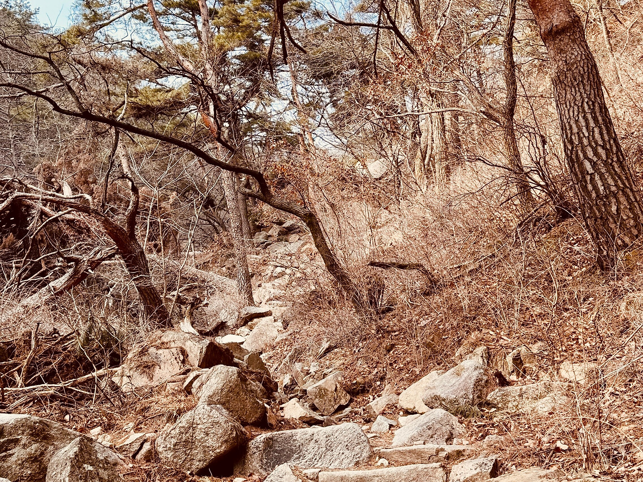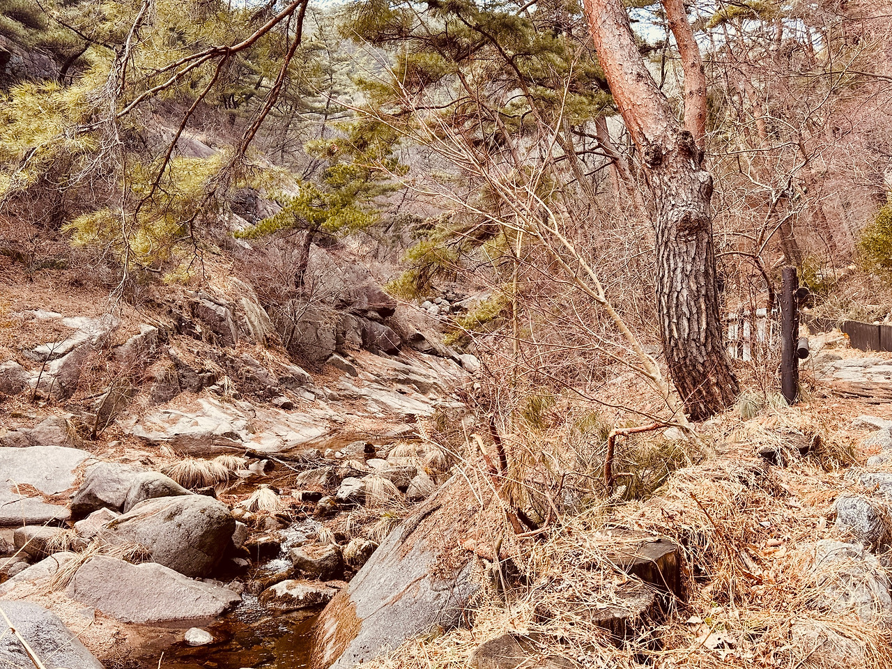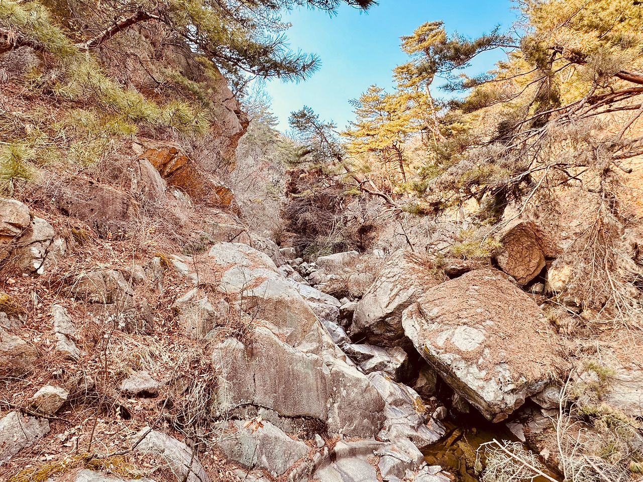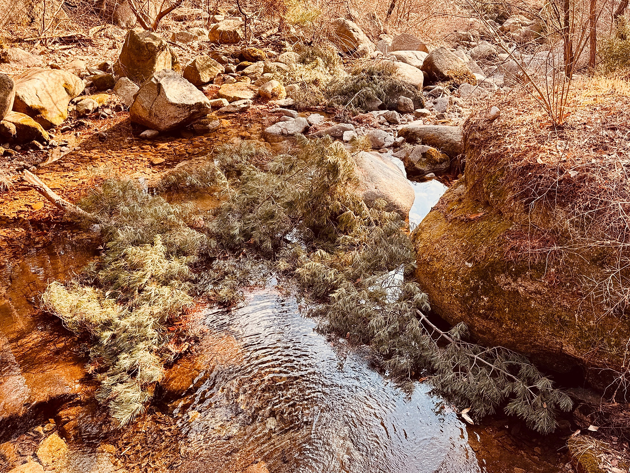 계곡물이 많지는 않았지만, 여기가 ‘계곡’이라는 증명은 충분했다. 마른 돌덩이 사이로 흐르는 물, 양 옆으로 깎아지른 협곡이 종종 그것을 말해준다.