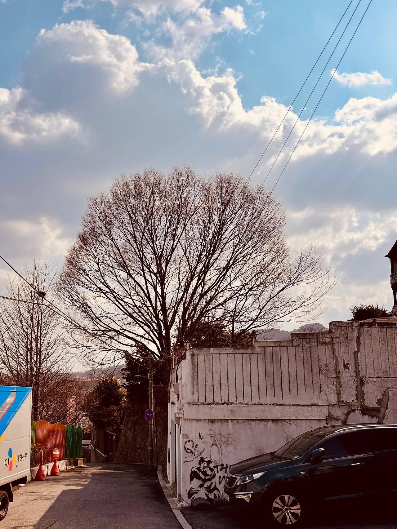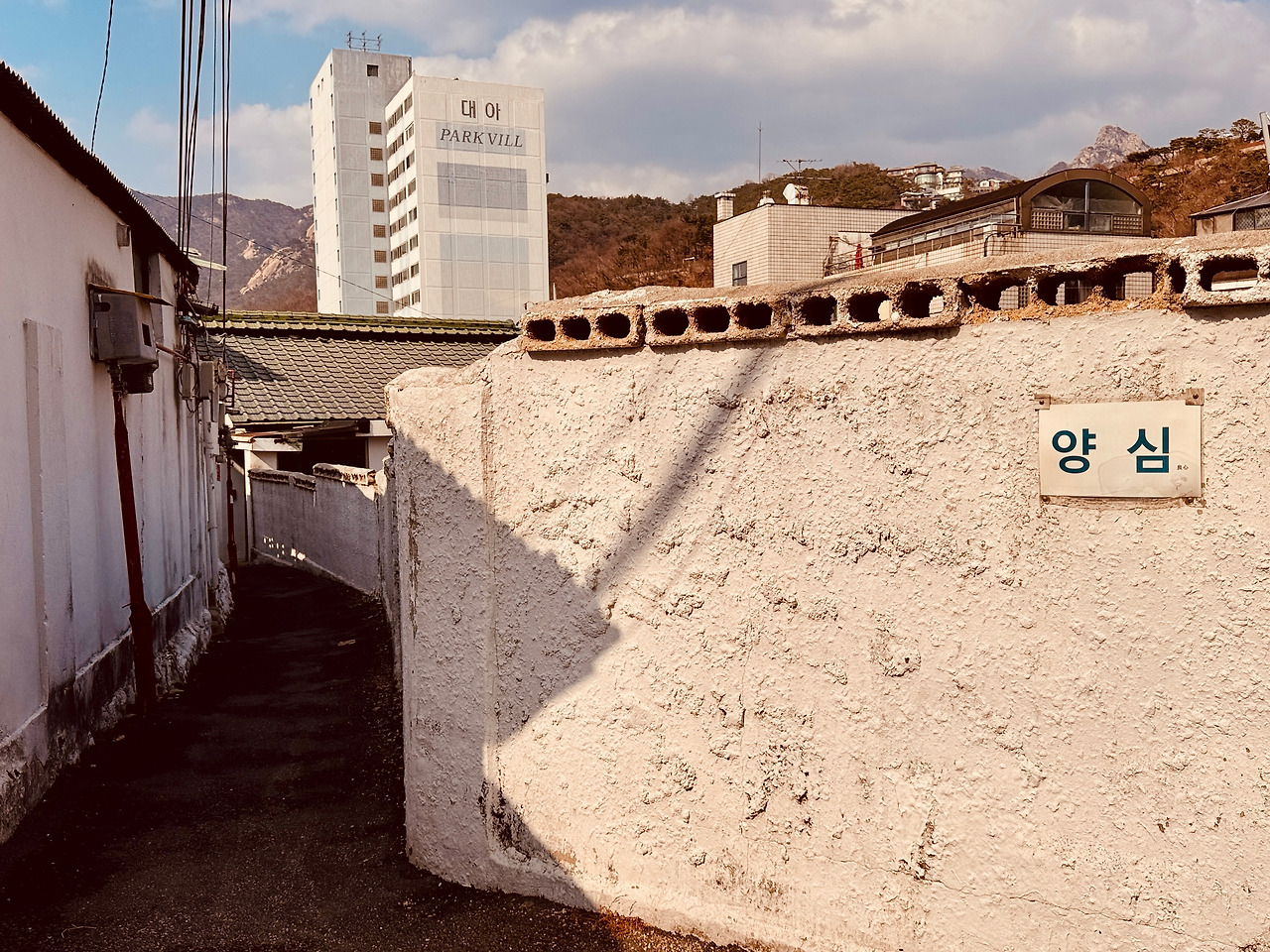 골목이 많지 않았다. 그나마 좁은 길을 찾아 걸었다. 내 몸 두세 개가 부딪히며 걸을만한 사잇길이다. 흰 담장에 ‘양심’이 묵직하다. 쓰레기 하나 없이 골목길을 지키는 것 같았다. 품격에 인사를 하고 빠져 내려오니, 저 위로 ‘구기터널’이 보인다. 이제 구기동으로 간다.