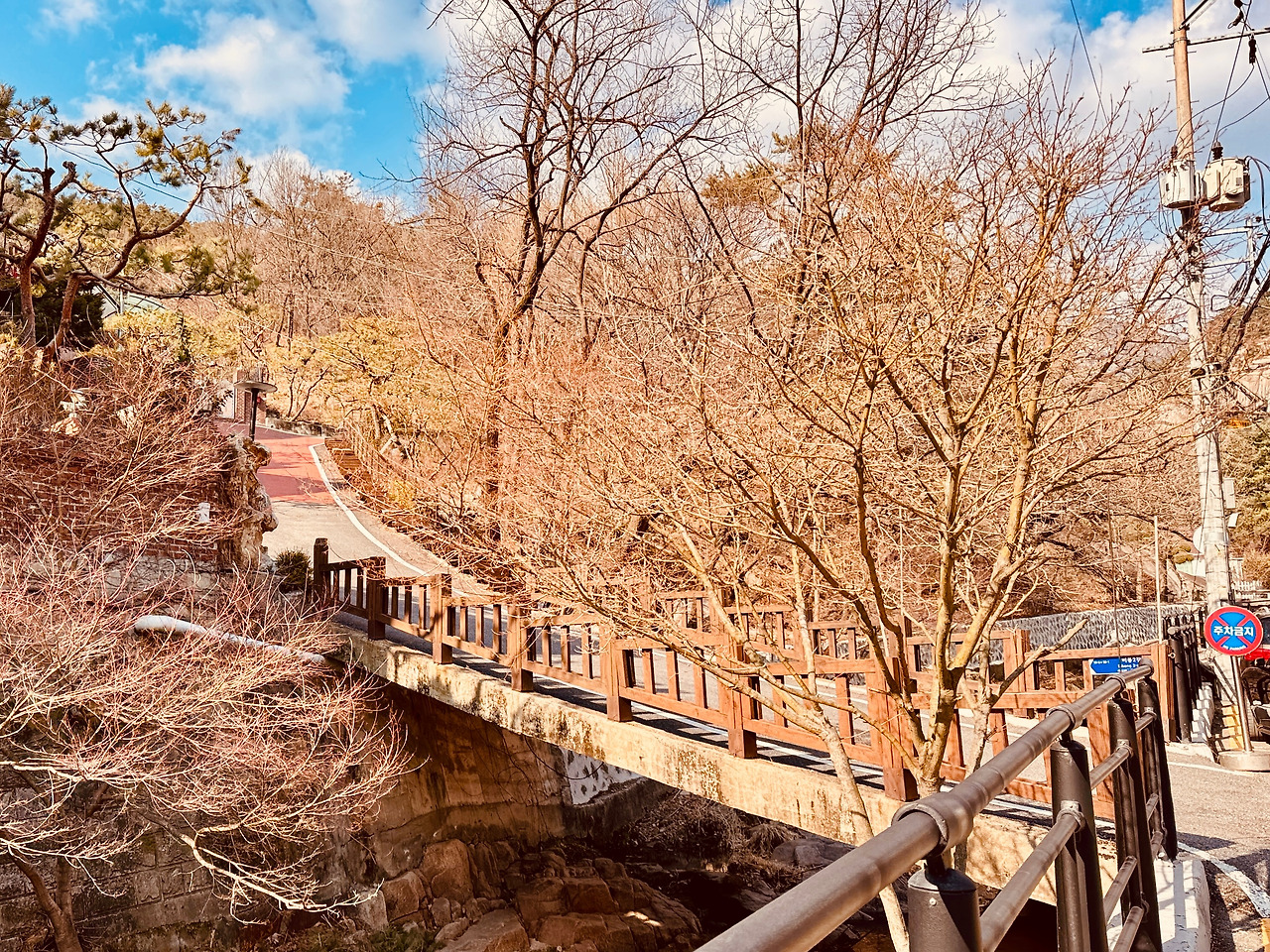이제 더 이상 보이지 않는 폭포수를 찾아 올라가는 것은 무의미하다 생각되었다. 겨울에도 말라버린 떼창의 물줄기는 다음 여름에나 기약해야겠다. 이쯤에서 뒤돌아 다시 걸어 내려오는데, 태양도 슬슬 정점에서 내려앉는다. 퇴근 준비하느라 신이 나 있다.