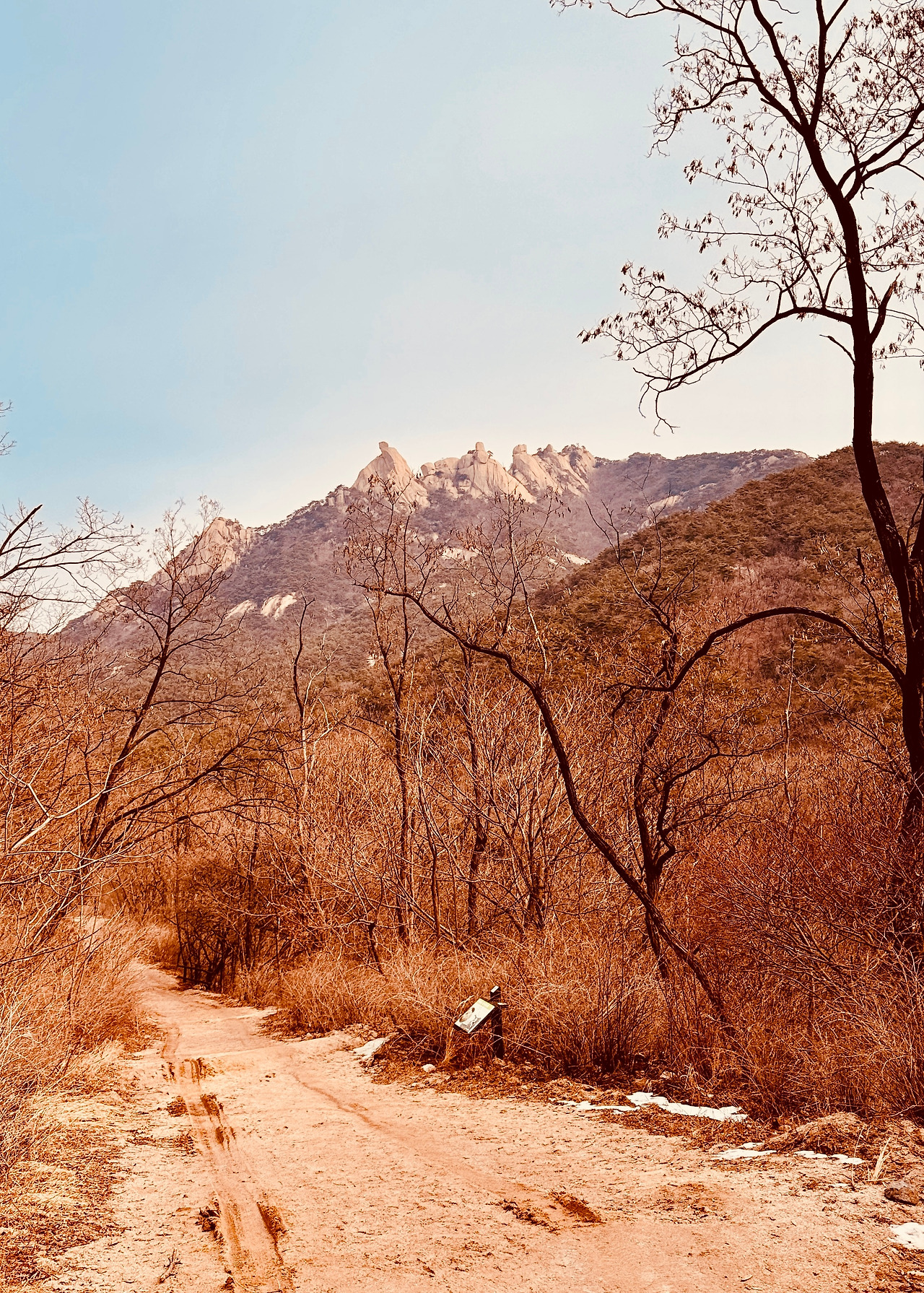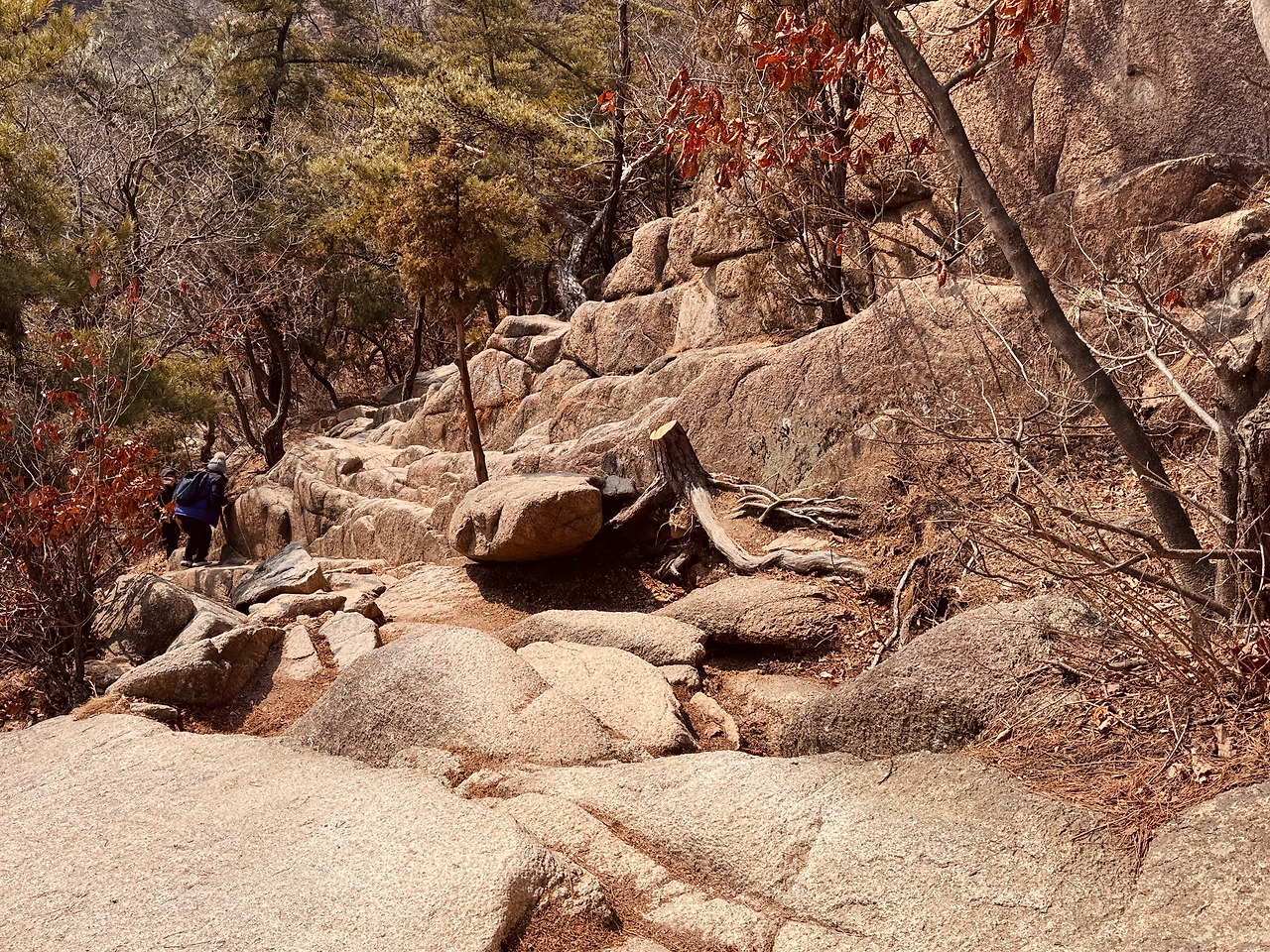 북한산 둘레길의 하이라이트 ‘우이령길’은 예약제로 운영되었다. 가는 날, 이상하게 사람이 없다고 생각했는데, 봄이 오는 겨울 끝자락의 우이령길은 얼음이 녹아 진창에 가까웠다. ‘아! 이래서 예약한 사람이 별로 없었구나.‘ 좀 날이 지나서 왔어야 했나 보다, 생각했다.