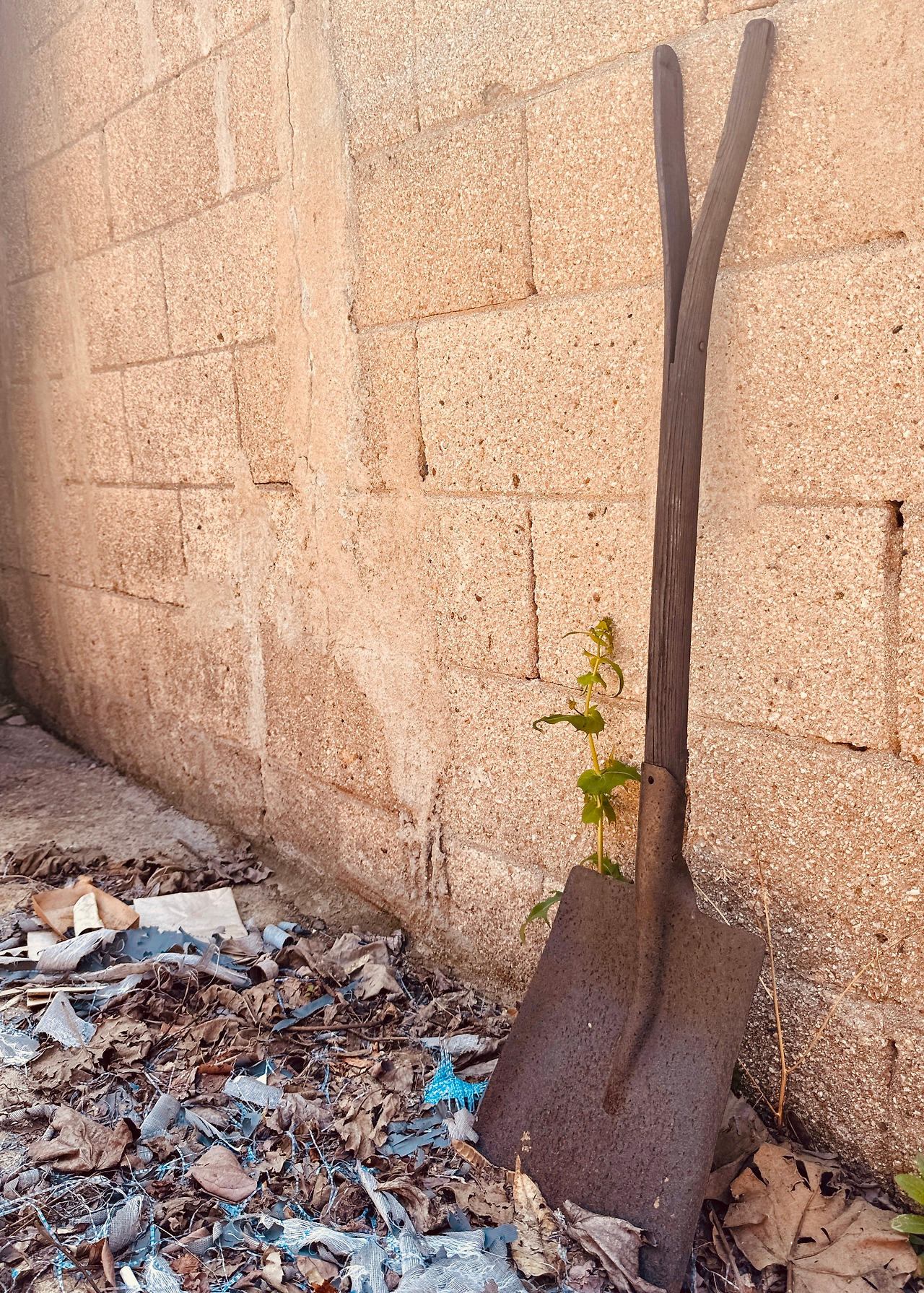 묘하다. 적막하지만 아련한 기억들이, 다 낡아 떨어진 시멘트 길 위로 스멀스멀 기어 나온다. 전기도 안 들어오는 전봇대들은 성한데, 이 고을 빛은 오늘 낮이 마지막이다. 금방 해가 떨어지면, 어두컴컴한 길에서 쉽사리 방향을 잃을 것 같다. 시커먼 삽 한자루가 명화처럼 담장을 예술로 만든다.