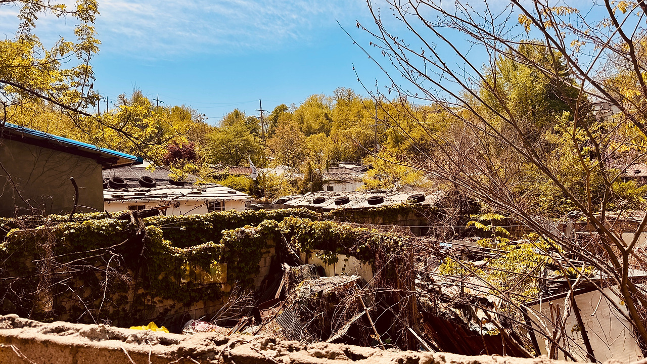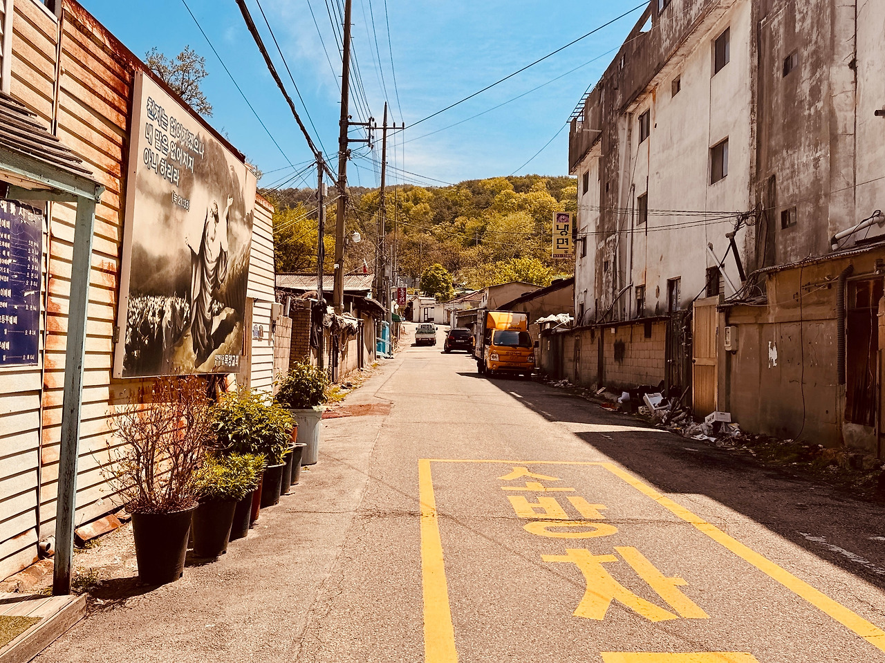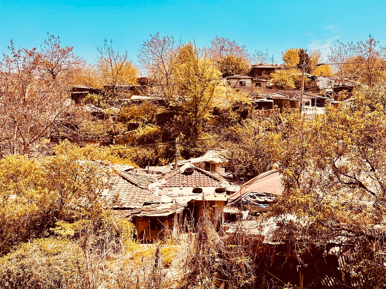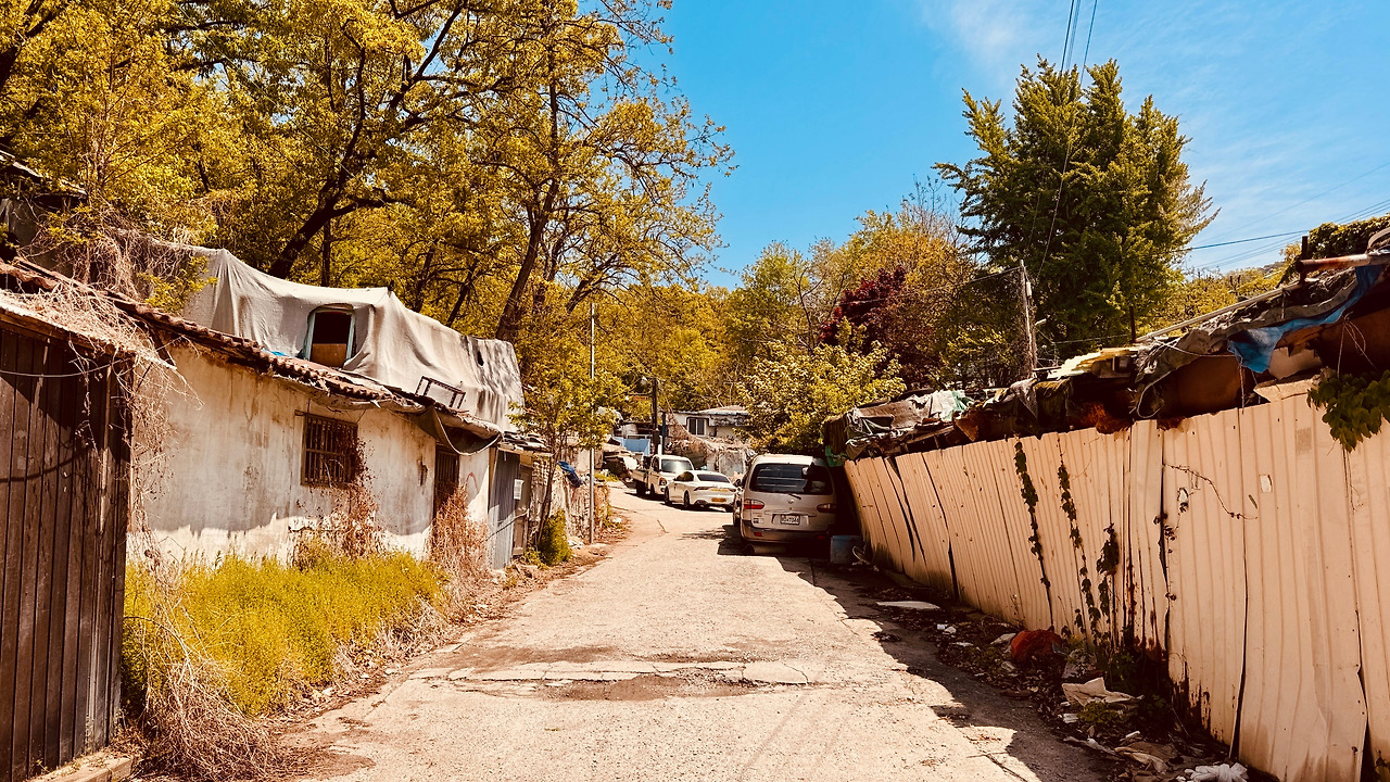 길이 막혀 있으니 다시 돌아 내려올 수밖에 없었다. 아직은 내 기억에 남아있는 그 언덕배기를 발견하진 못했다. 마을길은 너무나 적막해서 한낮인데도 귀신이 한 바가지 나올 것 같았다. 한 블록을 가로질러 오르니 저 앞으로 낮은 지붕들이 보이기 시작했다. ‘그래, 드디어 마을 같은 곳이 보이는구나!’
