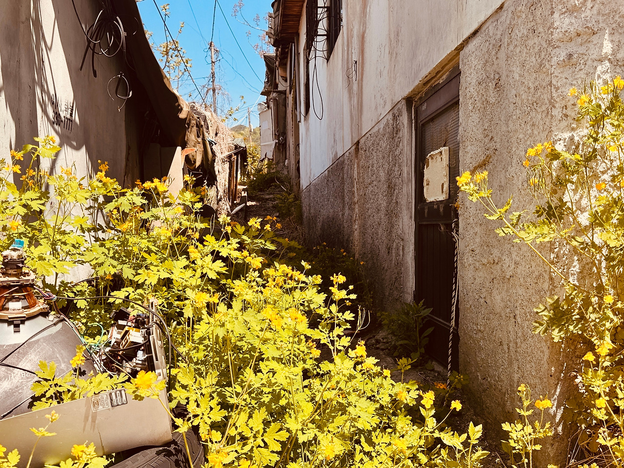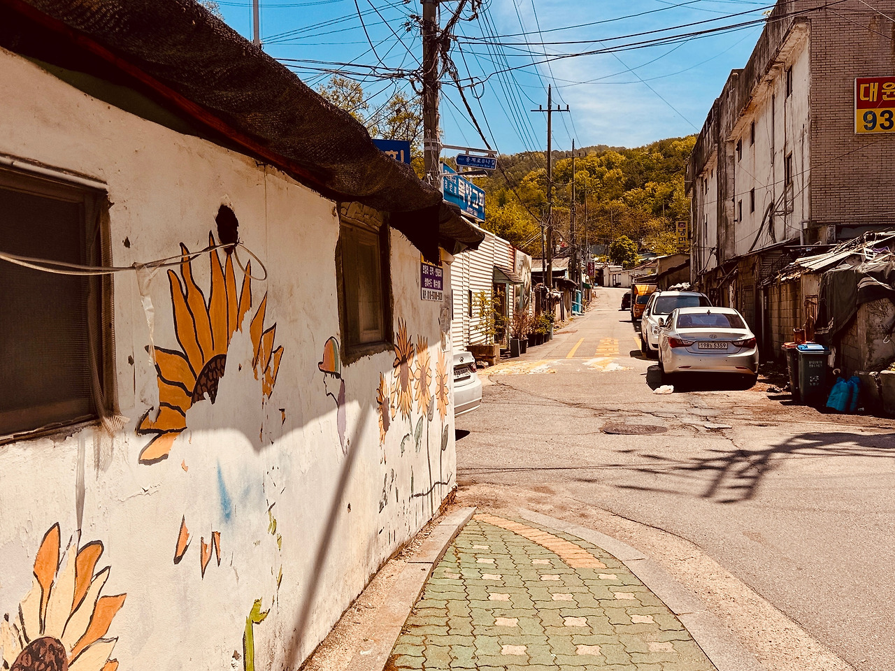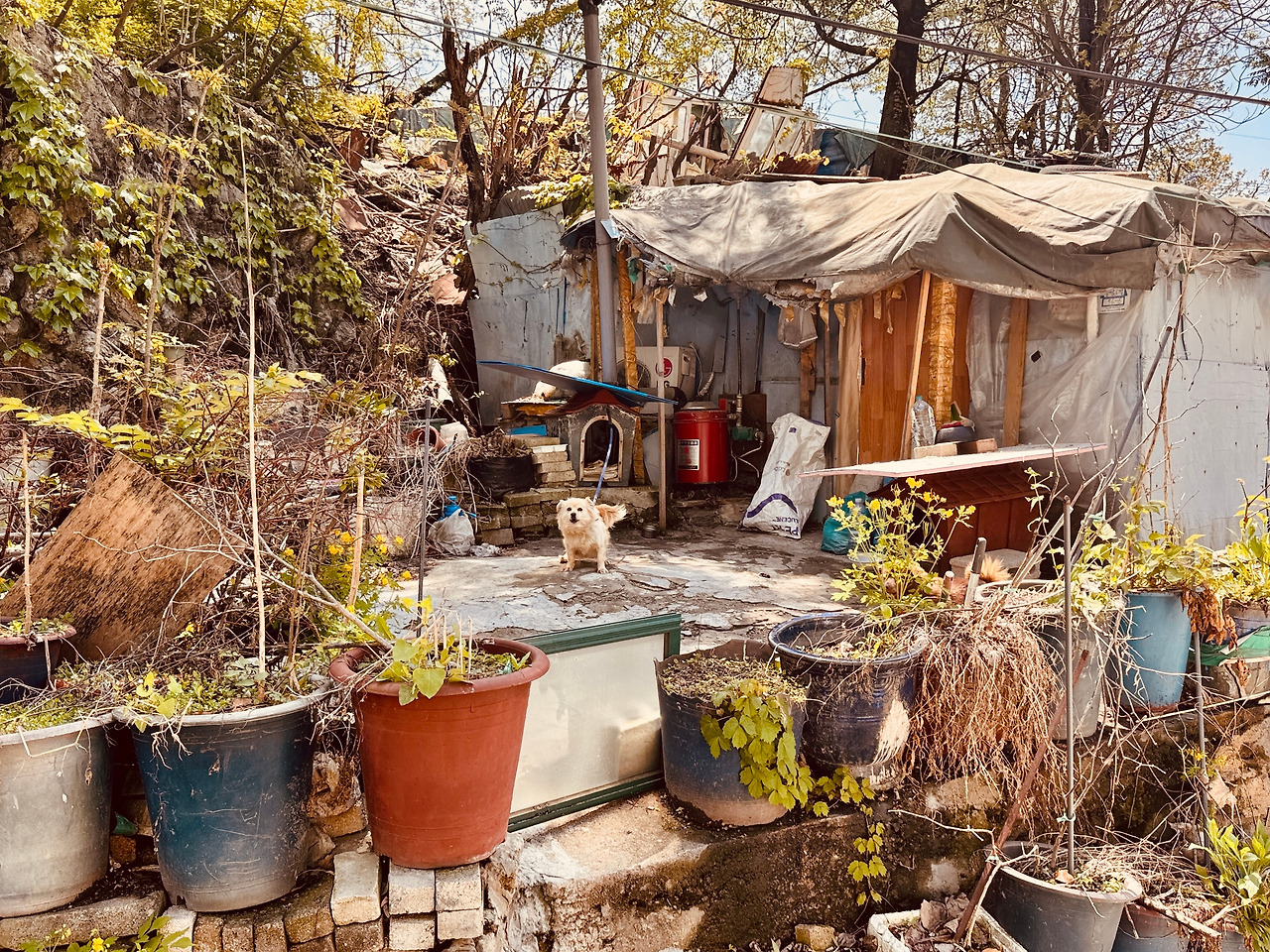 길이 막혀 있으니 다시 돌아 내려올 수밖에 없었다. 아직은 내 기억에 남아있는 그 언덕배기를 발견하진 못했다. 마을길은 너무나 적막해서 한낮인데도 귀신이 한 바가지 나올 것 같았다. 한 블록을 가로질러 오르니 저 앞으로 낮은 지붕들이 보이기 시작했다. ‘그래, 드디어 마을 같은 곳이 보이는구나!’