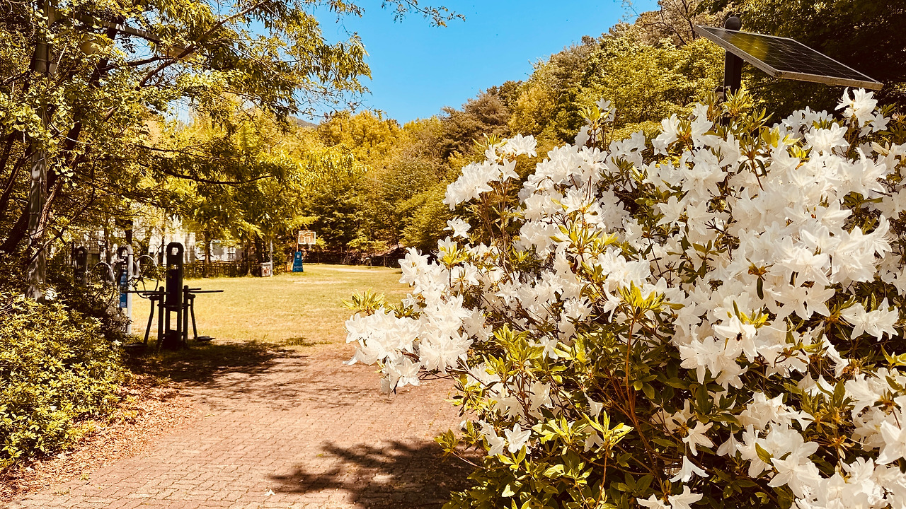 마을길 오르막 끝으로, 제법 멀쩡한 건물 하나가 보였다. 다가가 보니 ‘104 마을 예술 창작소’라고 씌어 있는데, 역시 문은 자물쇠로 채워져 있었다. 그 앞으로 하얀 백합송이가 잔뜩 피어 있고, 아무도 반기는 이 없었는 듯 내가 다가가니 좋아라 한다.