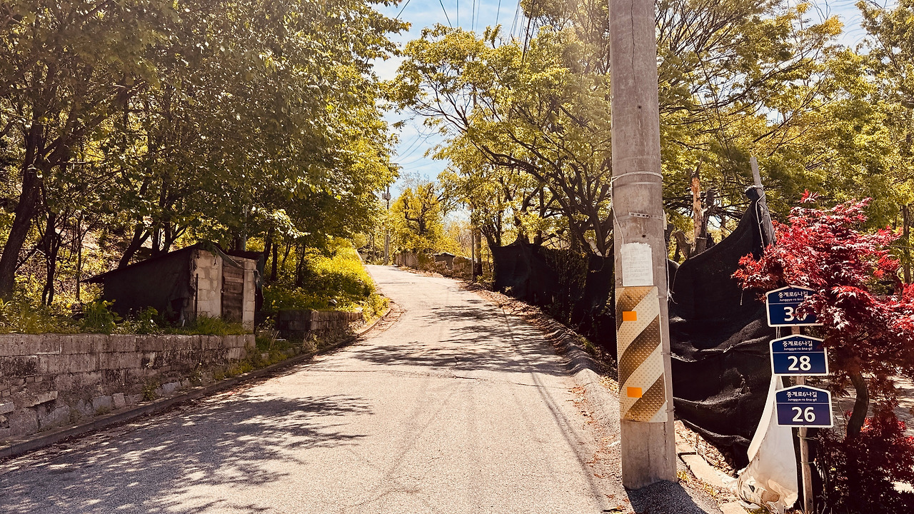 이제 조금 ‘길다운 길’을 걸어 나오니, 저 반대편에서 보았던 언덕배기 길이 눈앞에 나타났다. 크게 가파르진 않았지만, 길이는 꽤 길었다. 여기선 누구든 이 길을 터벅터벅 오르고 내려갔을 테니, 나도 그 보이지 않는 발자국을 따라 걸어 올라갔다. 십수 년 전, 꼬부랑 할머니가 자기 따라오라며 손짓하던 그 순간, 쌀을 짊어지고 낑낑대던 내 젊은 날의 환영이 어렴풋이 떠올랐다. 그때 흘렸던 땀은 아직 기화되지 않은 채, 먼지와 뒹굴어 길자욱으로 남아 있었다.