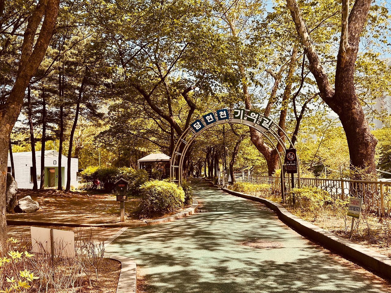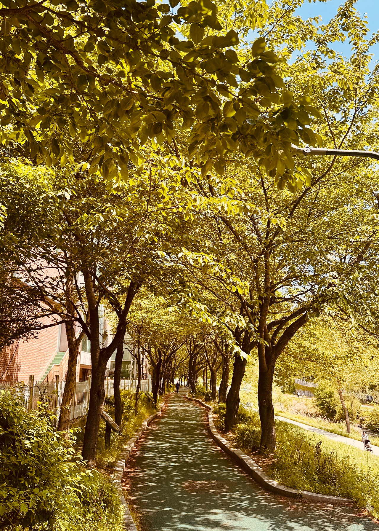 공원길 사이로 나무는 경쟁하듯 그의 잎으로 손을 흔들어댄다. 하늘도 가려 이곳은 하늘색이 초록이다. 백사마을까지는 중계 2•3동을 지나 3km 남짓 더 걸어야 했다. 일부러 당현천을 따라 걸었다. 옆으로 지나가며 수다로 재잘대는 아주머니 두 분도 정겹다.