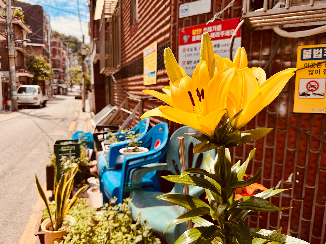 서울에서 이런 정취는 참 색달랐다. 작은 골목에 불과했지만, 꽃이 만발한 정원길은 한 발 한 발이 꿈같았다. 골목을 따라 쭉 걸었다. 길이는 짧았지만 여운은 길게 남았다. 정원을 빠져나오니 어르신 한 분이 지팡이를 쥐고 앉아 있었다. 나를 힐끔 보시더니 이내 얼굴을 돌리신다. 피하지 않고 옆에 나도 앉았다. 저 아래로 난곡동 일대가 비탈 따라 평온했다.