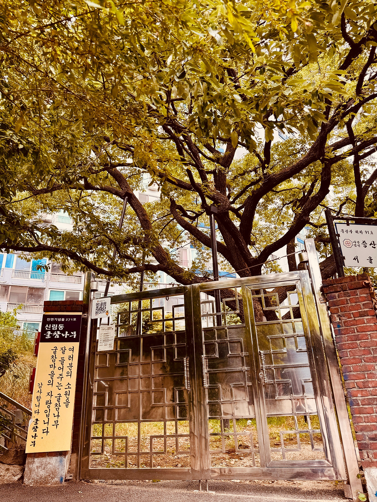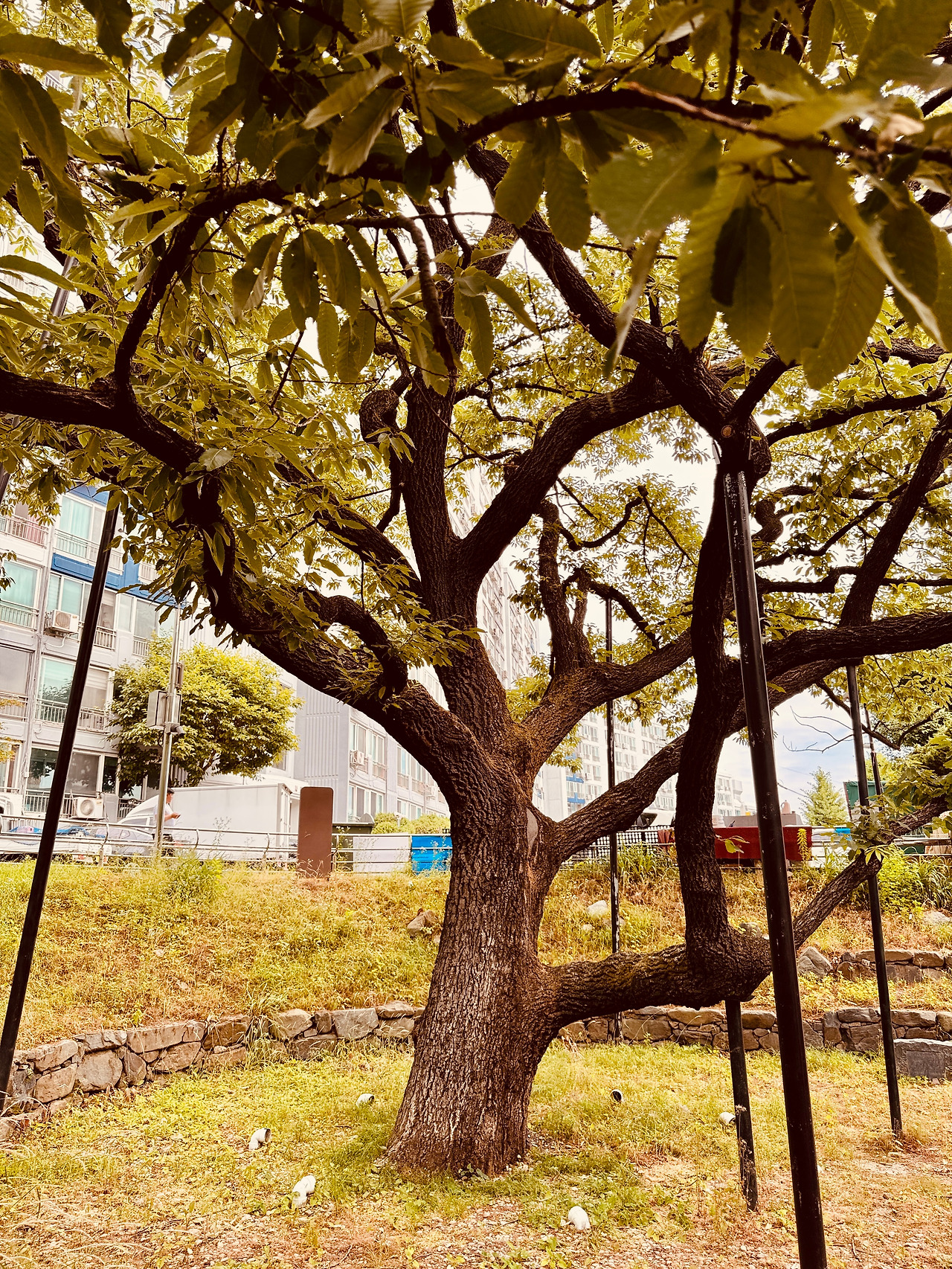 마을 끝에 걸려 있는 아파트 몇 채는 대단지가 아니다 보니 오히려 난곡 마을의 이방인 같았다. 그 앞으로 천연기념물인 굴참나무 한 그루가 제 몸을 스스로 다 이기지 못한 채 목발을 짚고 서 있다.