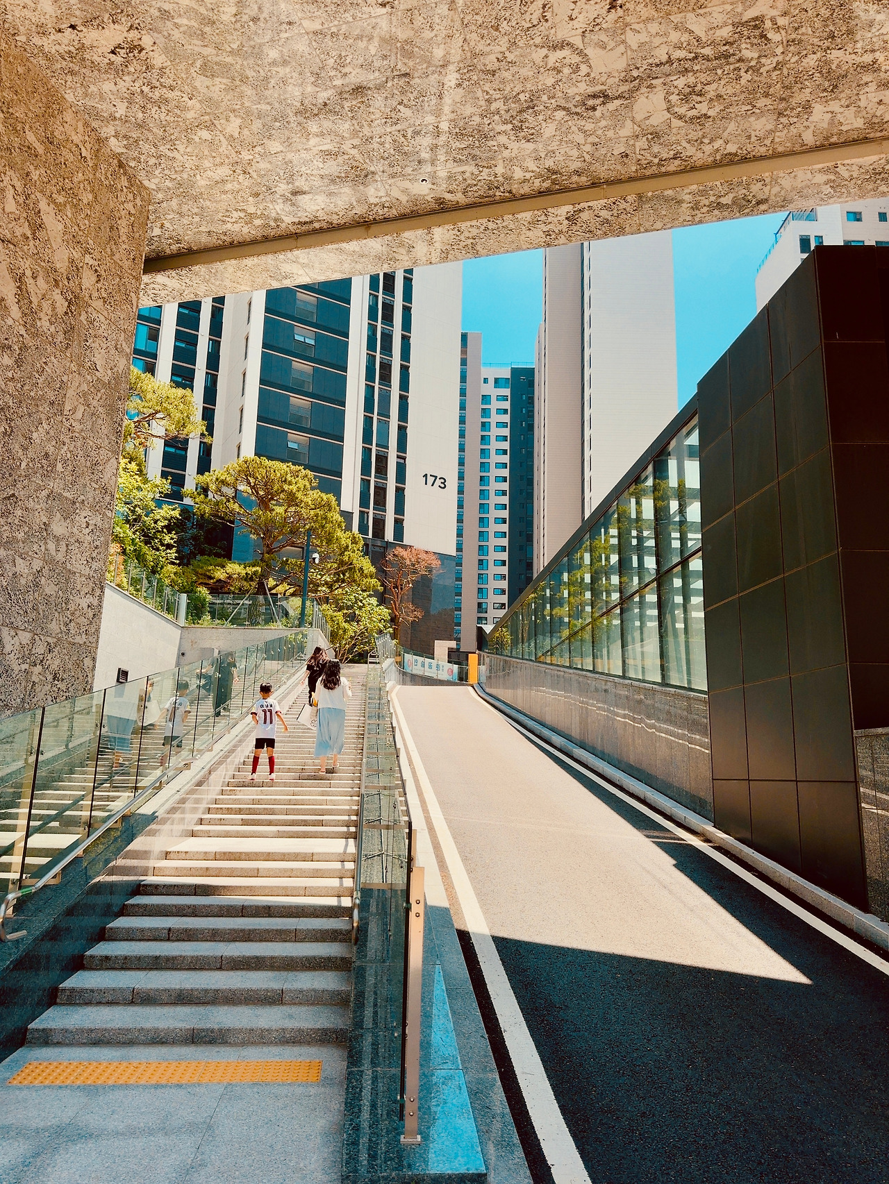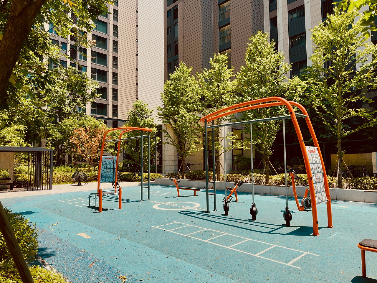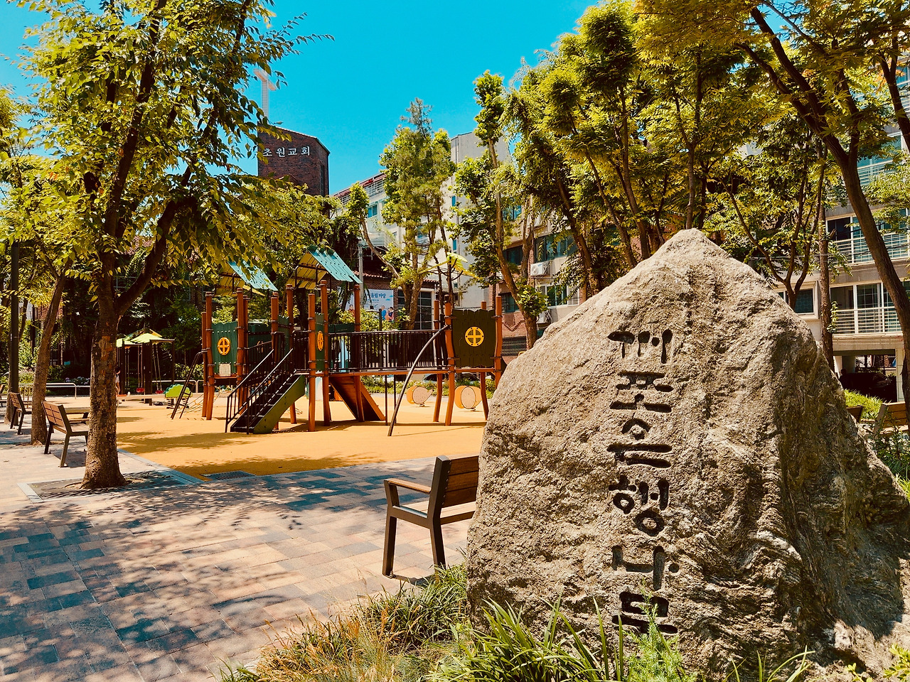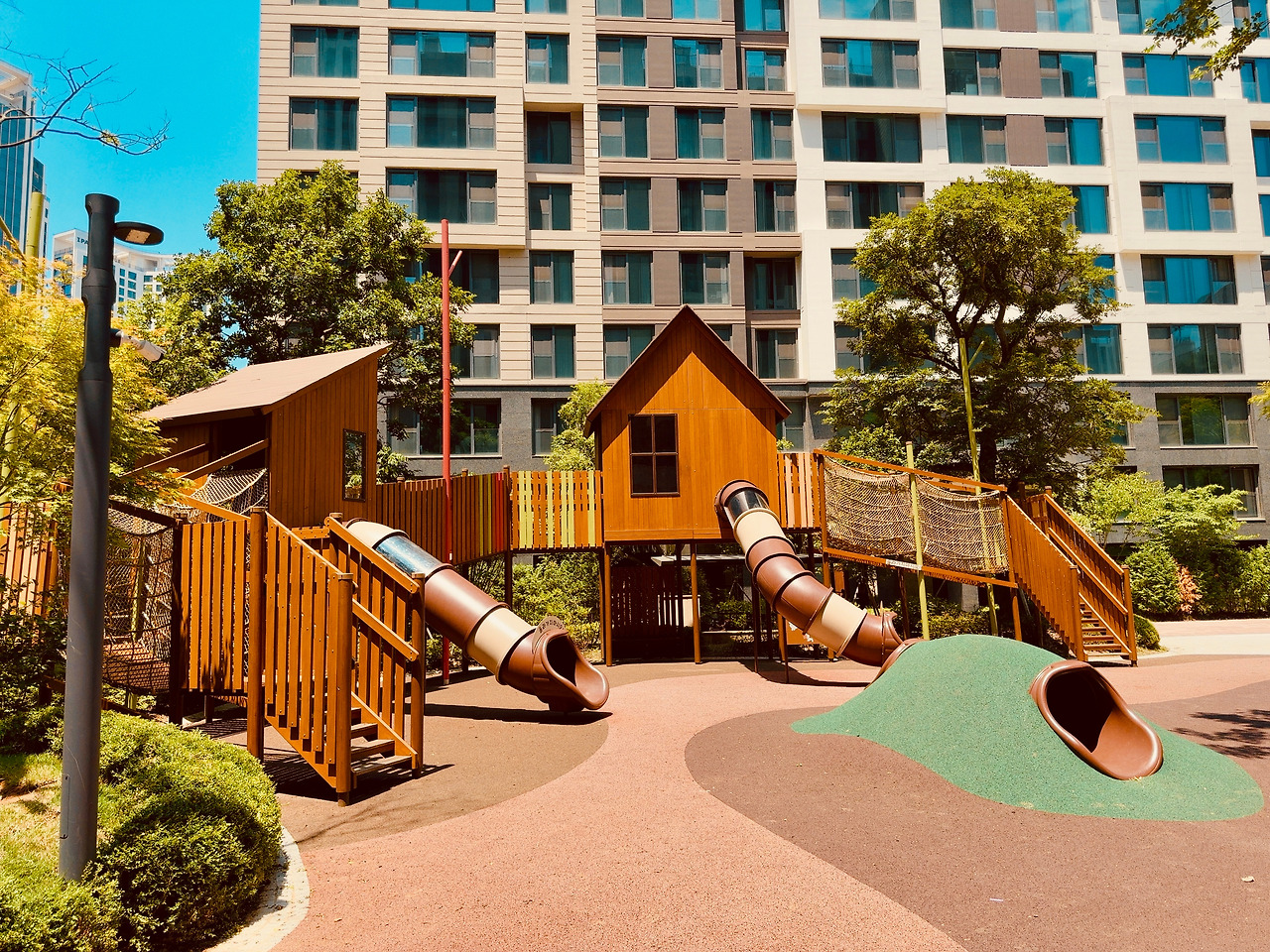 어쩜… 놀이터마저 예술이구나! 단지 내 곳곳에 놀이터가 하나씩 있는데, 마치 서로 다른 디자이너가 그림 그리듯 경합했다. 날이 너무 뜨거워 홀로 외로울 법도 한데, 전혀 외로워 보이지 않았다. 하나의 작품처럼 벽에 걸린 그림 같았다.