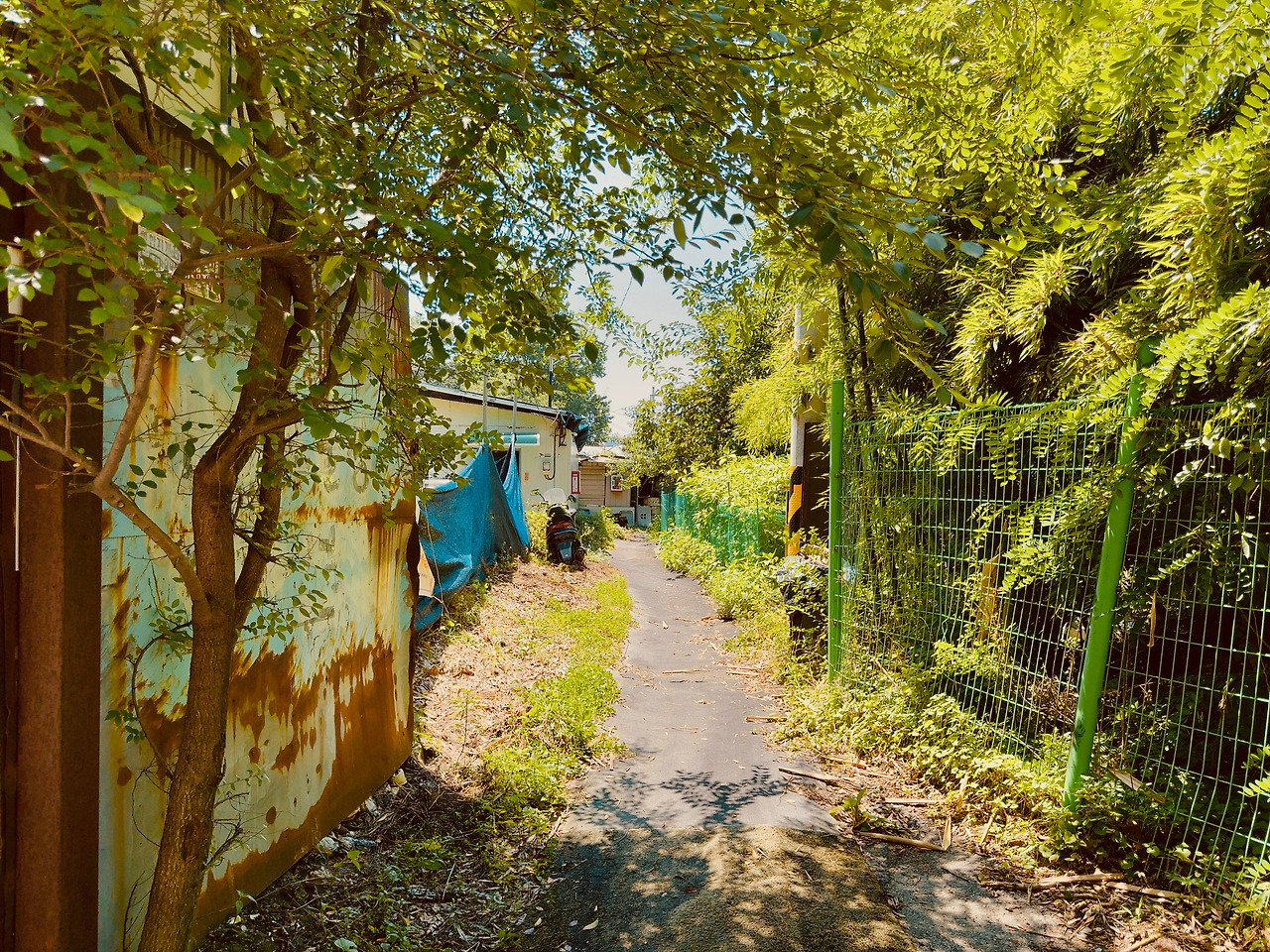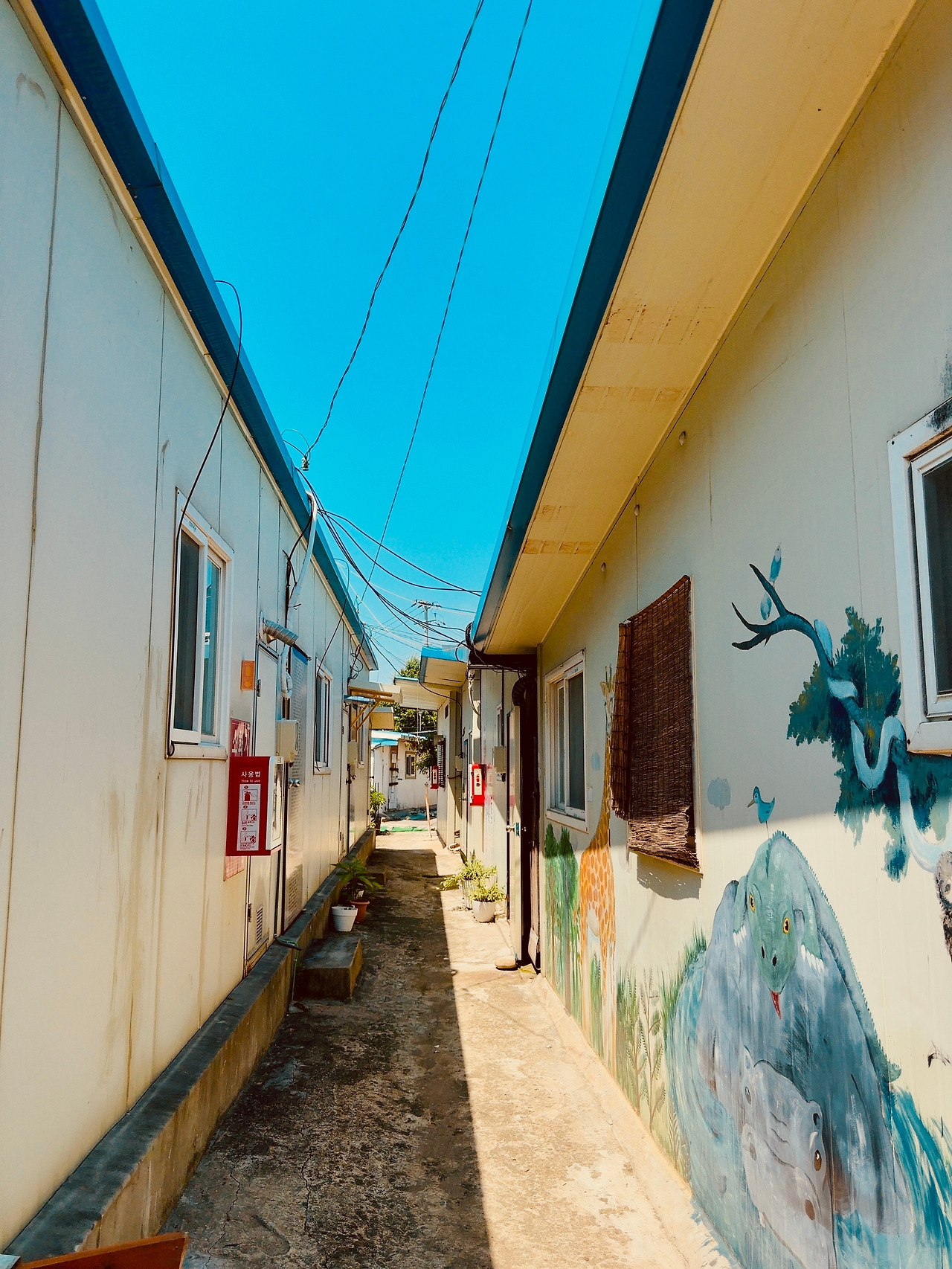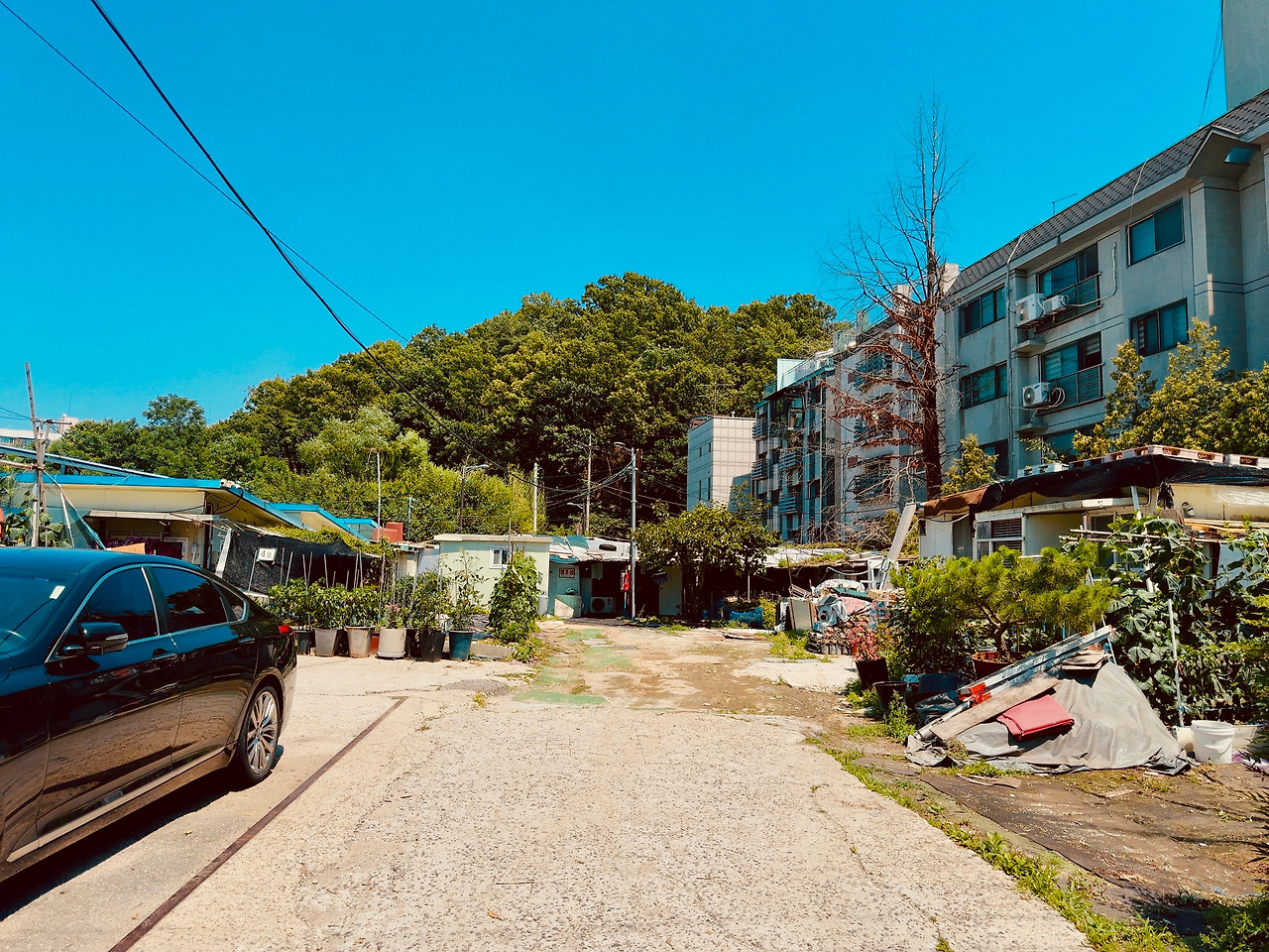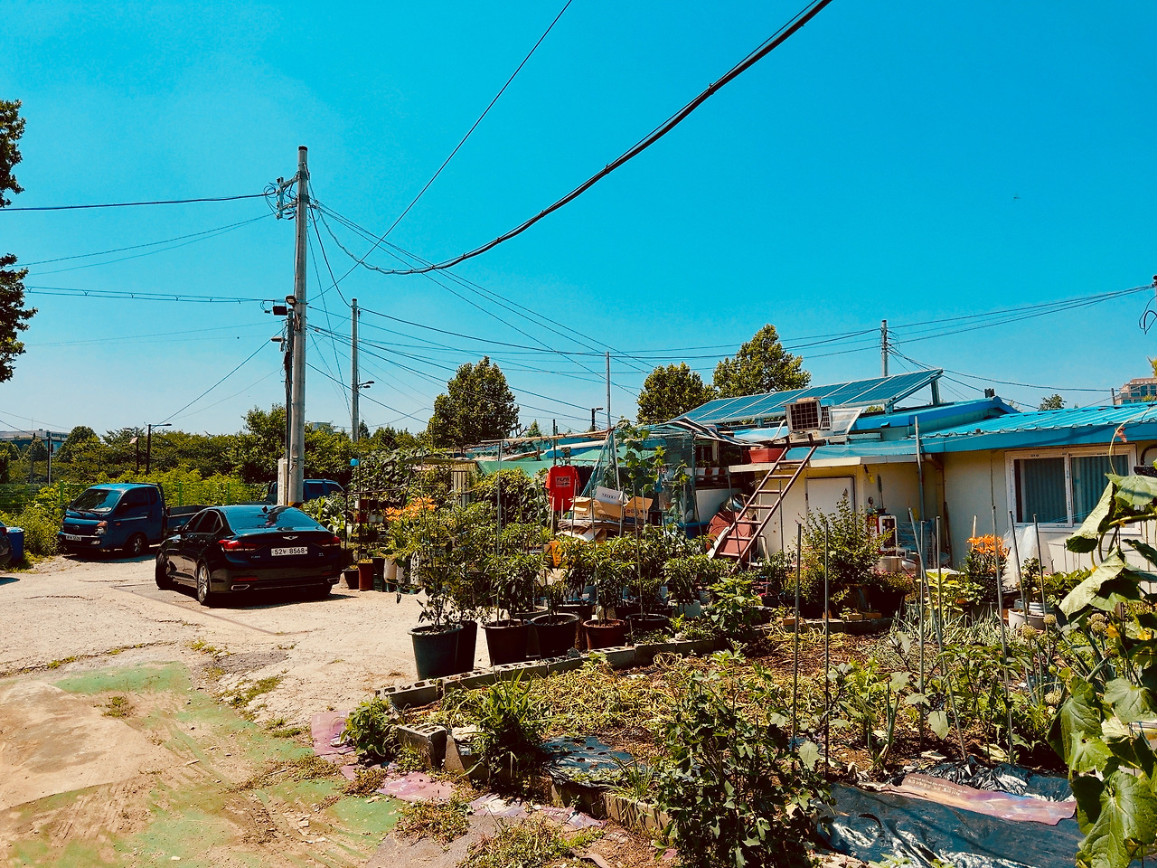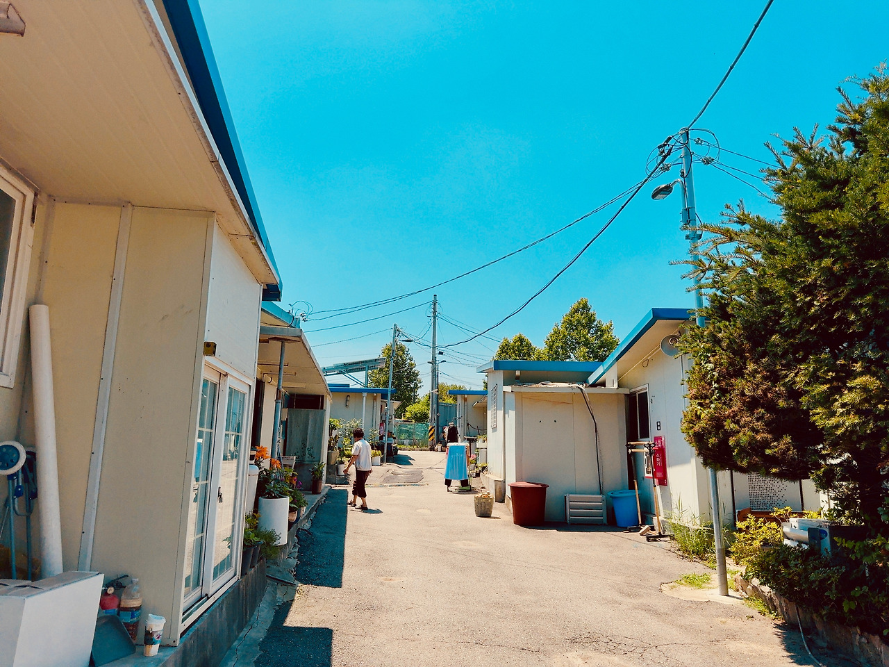 골목 시멘트 바닥은 울퉁불퉁하고, 발목이 살짝 꺾일 정도로 돌길과 흙길이 섞여 있었다. 한두 분의 주민들은 이방인에 관심 없는 듯 내 옆을 지나쳐 가거나 자기 일에 집중이다. 슬핏 곁눈질로 집들을 스쳐 보는데, 구룡마을과는 또 다른 느낌이다. 골목은 다소 넓었고, 햇빛이 쨍하니, 마당 앞에 심어 놓은 고추나무도 반들거린다. 슬라브 가건물이 고단해 보이지만 또 공기마저 한가로웠다. 집 파리 한 마리가 웽~ 하고 날아간다.