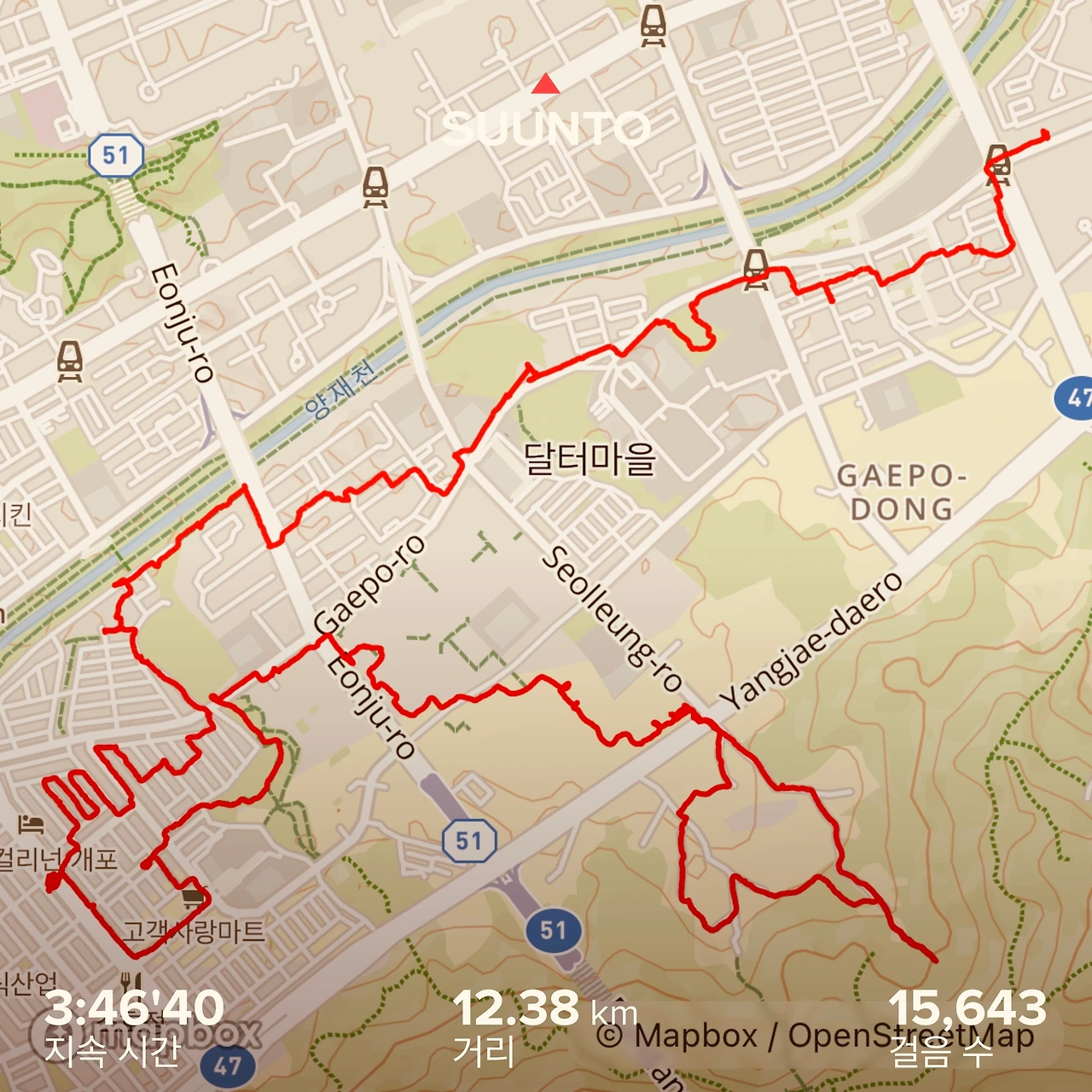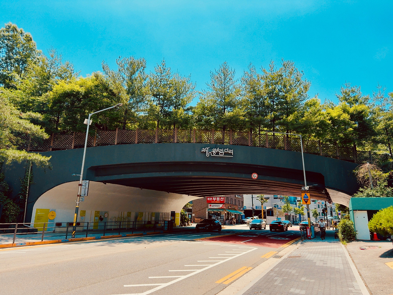 그들의 구역을 나왔다. ‘개포로’ 대로변을 건너 개포1동에서 다시 개포4동으로 넘어간다. 그곳에는 이곳과는 또 다른 옛 모습의 개포동이 일부 남아 있다. 쨍쨍한 햇빛에 얼굴이 타 들어가는데, 그늘은 계속 없다. 얼굴에 바른 선크림이 땀에 녹아, 눈 안에서 따갑다. 저 앞에 ‘용바람 다리’가 보인다. 그 위로, 공원이 보인다. 얼른 올라갔다. 개포4동 ‘달터근린공원’이다.