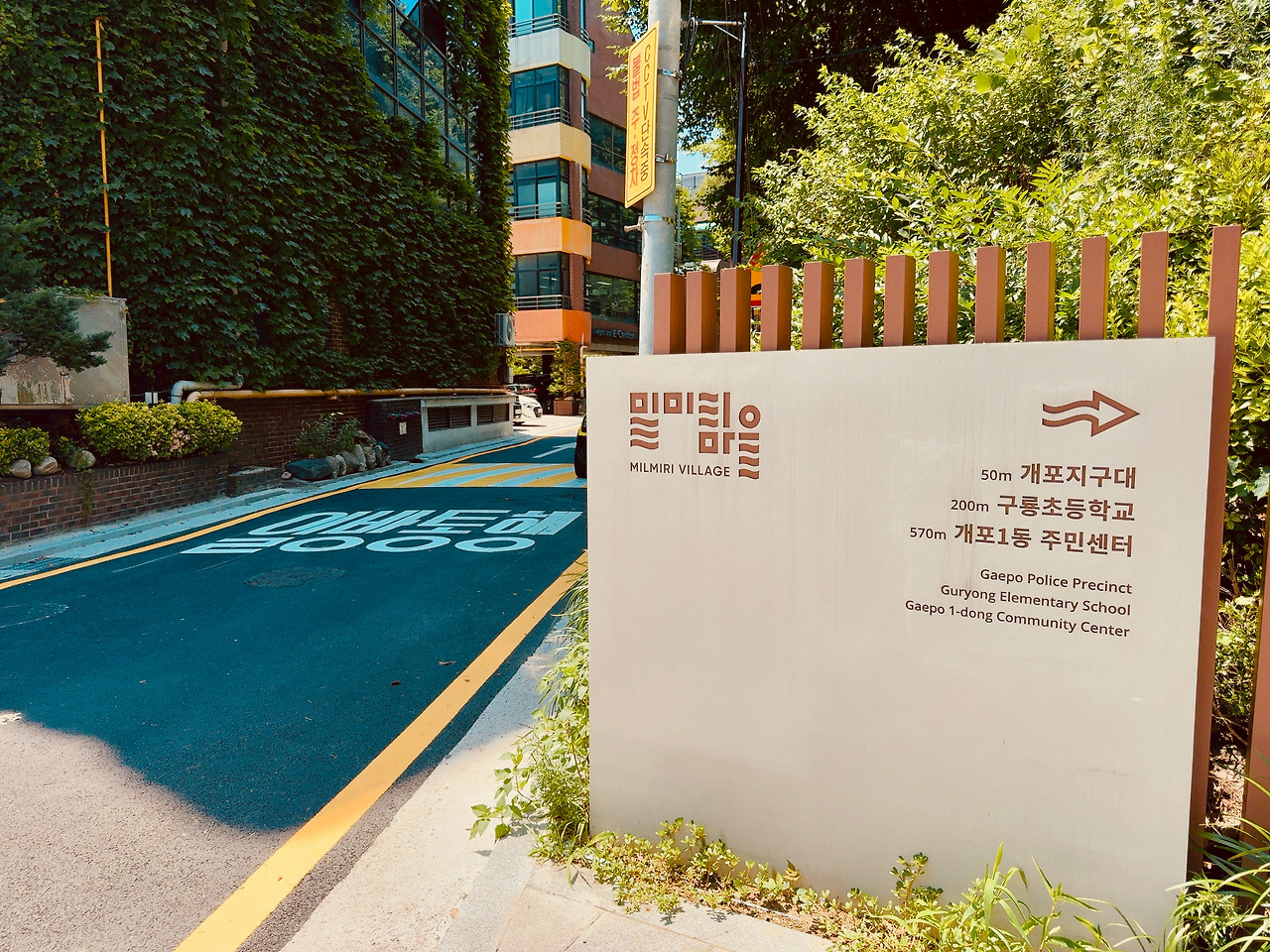 주택 골목을 이리저리 돌고 그 끝으로 나오니, 넓은 벌판이 나왔다. 그런데 양재천 옆으로 휑하니 뚫린 곳에 마을이 또 보였다. ‘아니, 여기도 마을이 있네?’ 새로운 경험이다. 내가 생각지도 못했던, 개포동 안에 마을이 여럿 존재하고 있었다. 게다가 부촌과 극단적으로 그렇지 못한 곳이 묘하게 섞여있어, 다채로운 감상을 준다. ‘밀미리 마을’이다.