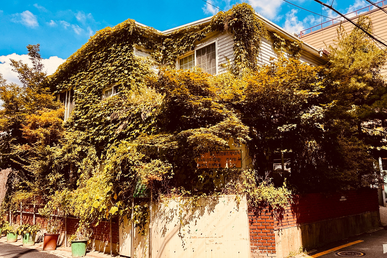 드디어, 오늘의 목적지인 화곡동에 도착했다. 먼저 마주친 곳은 ‘우장산’이다. 우장산은 양천구 화곡동과 가양동 사이에 자리한 해발 100m 남짓의 야산으로, 조선시대 궁중에서 기르던 말을 방목하던 목장(牛場)에서 이름이 비롯되었다. 그 아래로 낮은 주택들이 줄을 섰다. 나무로 뒤덮인 주택 하나는 턱수염을 자랑한다. 덥겠다 했더니 그늘지어 좋다고 웃는다. 청명한 하늘 그 아래 구름도, 그의 턱수염으로 화곡동 시장 입구에 그림자를 드리운다.