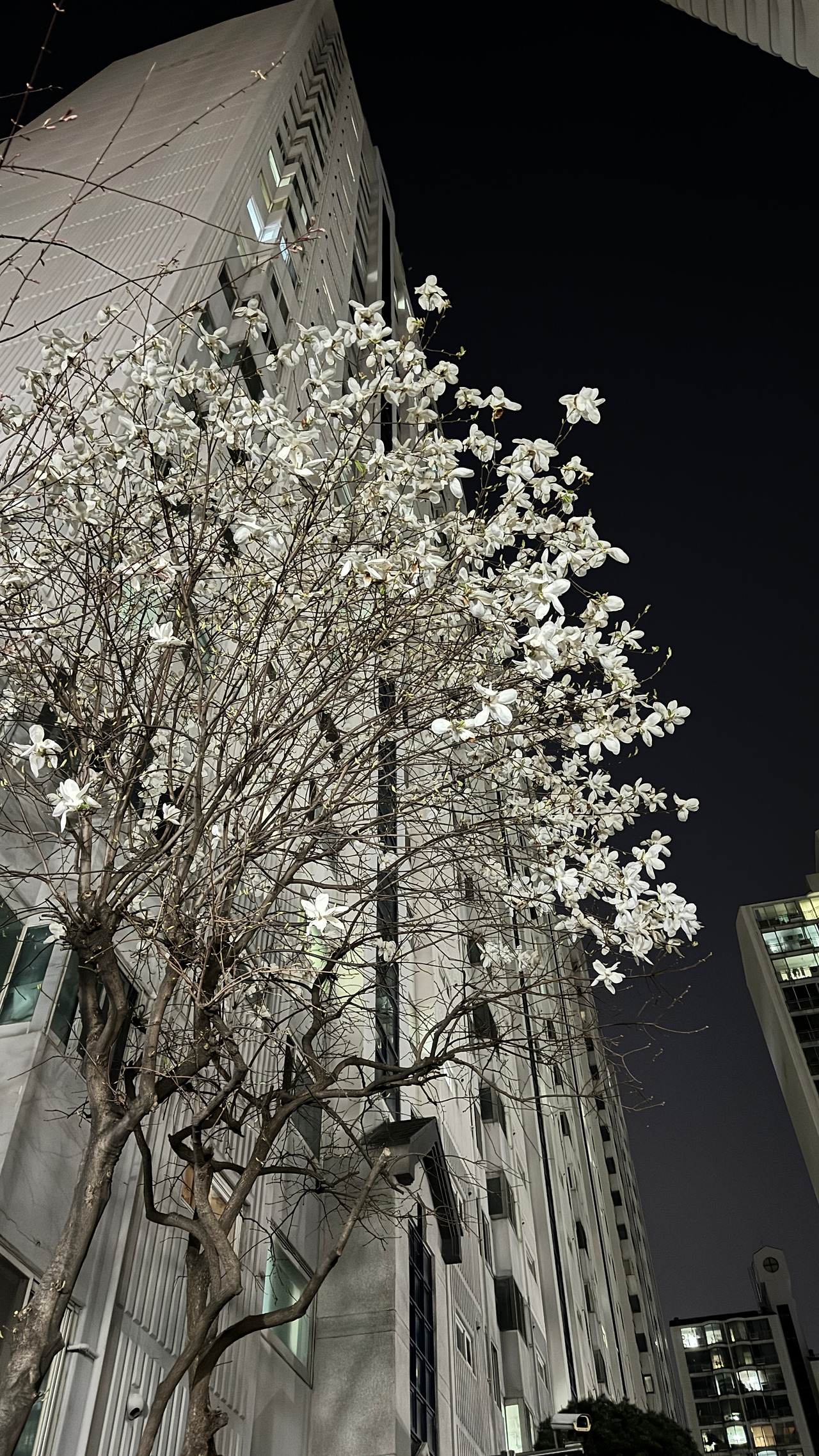 기다리는 동안 혼자서 동네 한 바퀴를 돌았다. 밤에 보아도 이쁜 장미가 아닌 벚꽃이다. 간혹 바람에 흩뿌려지는 벚꽃잎들을 손으로 잡아, 다시 가지에 붙이고 싶다. 오래도록 봄에 겨울눈을 구경하고 싶은 마음이 가득인거지. 너는 평생을 꽃만 폈으면 좋겠다고 혼자 키득거린다.