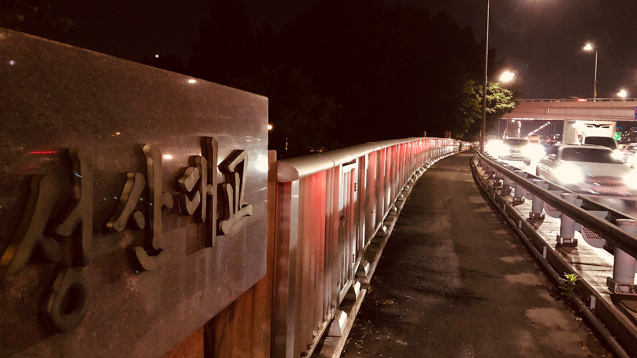 문래현대아파트를 지나 안양천으로 빠졌다. 이제 시간은 제법 어둑해져서 안양천의 유명한 벚꽃나무도 잘 보이지 않는다. 운동하는 사람들을 뒤따라 안양천을 왼 편에 두고 성산대교 방향으로 걸었다.
