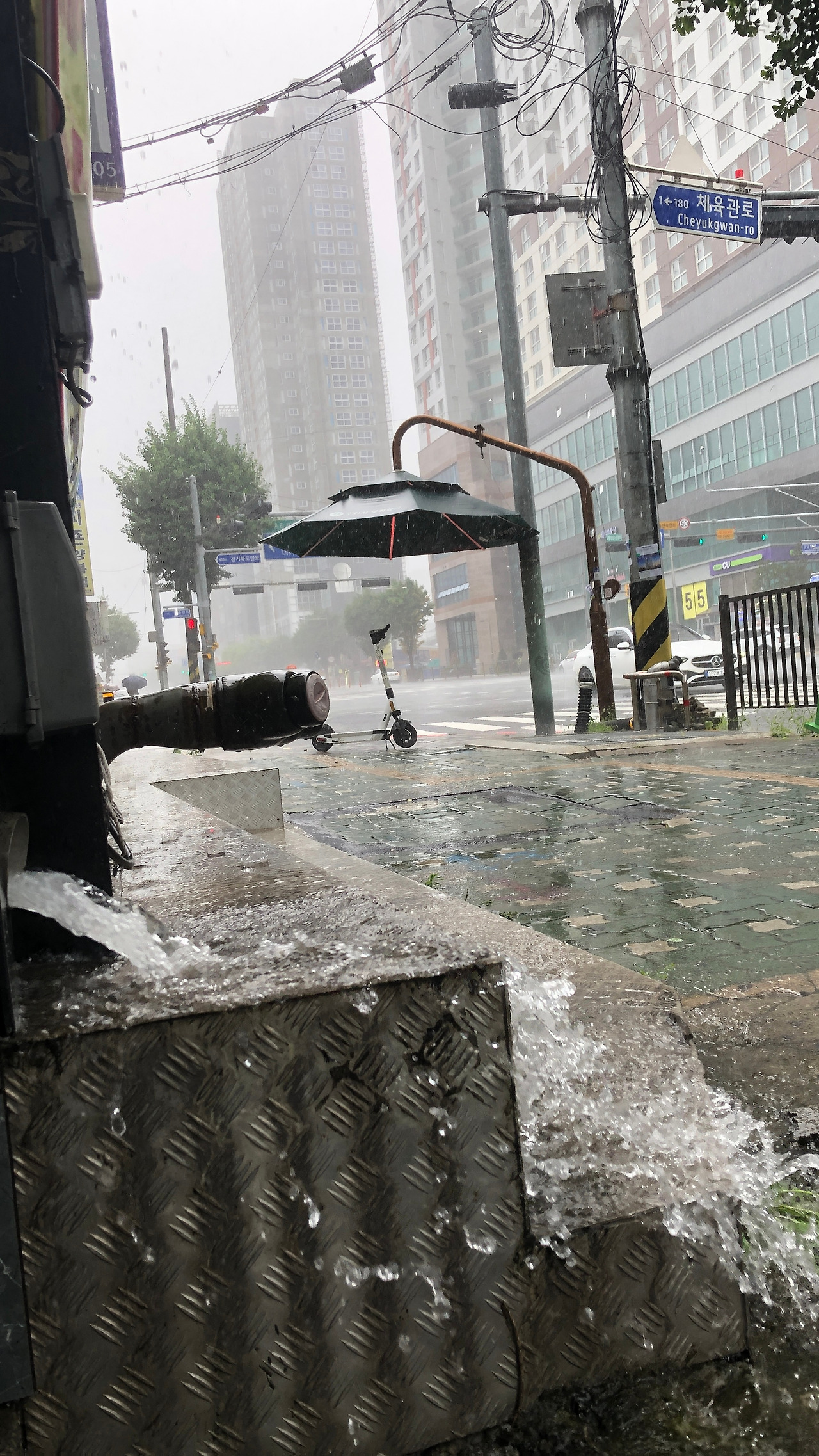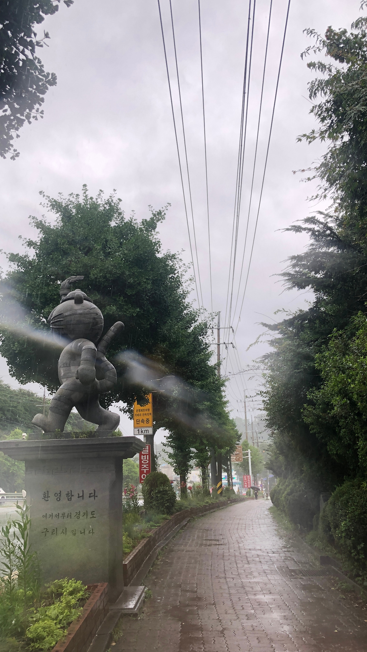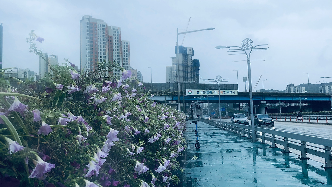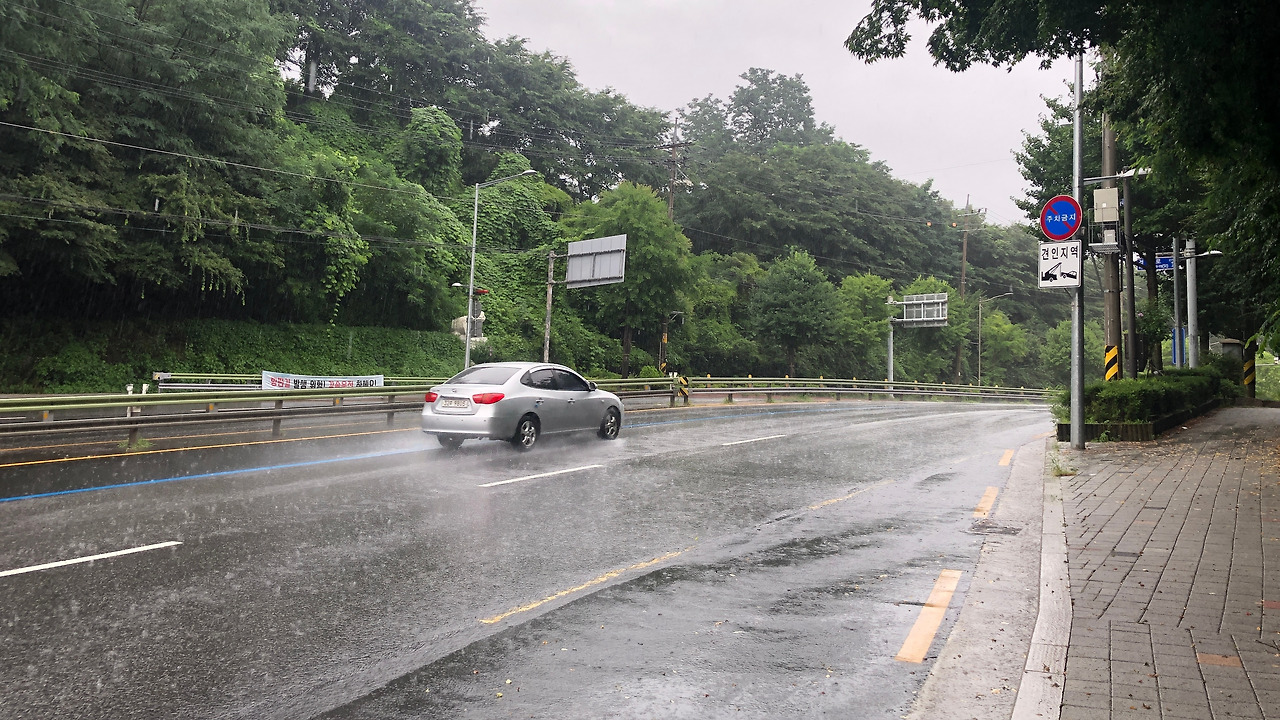 종로를 지날 때쯤, 잠깐 해가 반짝이더니 제기동과 청량리를 지나면서부터 비가 내리기 시작했다. 얼른 우비를 꺼내 입고 비를 헤쳐 걷는다. 하지만 이마저도 소용없는 것이 상봉역을 지나면서부터는 장맛비가 미친 듯이 퍼 붓기 시작했다. 우비는 전혀 제 기능을 못했고, 우르르 쾅쾅! 천둥과 함께 번갯불 한 줄기가 저 멀리서도 싸늘하게 나를 향해 내리친다. ‘이러다 길가에서 감전되는 거 아냐?‘ 걱정이 되기도 했다. 길 가던 사람들이 쳐다보는데 완전 미친놈이 따로 없어 보였다.