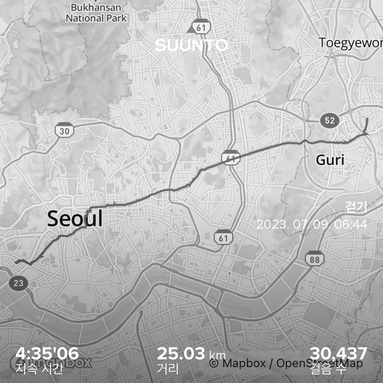 오늘 목적지는 ‘구리’다. “와! 구리라고?” 마포에서 구리까지 걷는다 하니 다들 ‘한소리’ 한다. 근데 가만히 따져보면, 거기까지 직선거리는 고작 22km인걸? 내가 그동안 걸었던 기록들을 보면 22km는 아무것도 아니다. 그저 마포에서 구리라고 하니까, 아주 멀게만 느껴지는 거라고 생각했다. 근데 말이지, 종국에는 정말 힘들기는 했다.