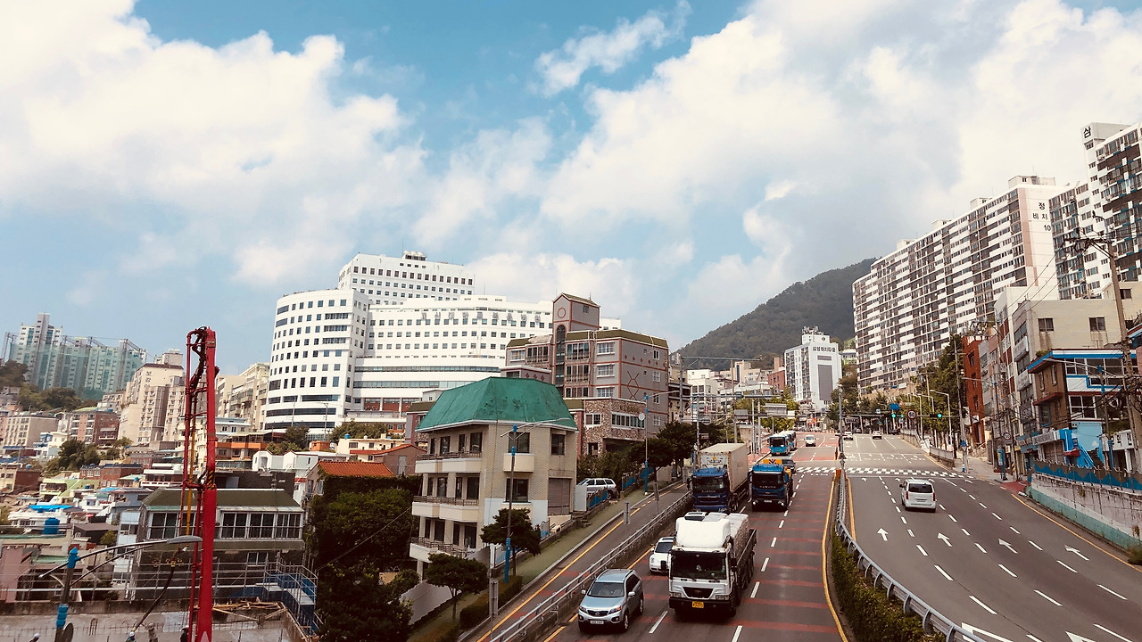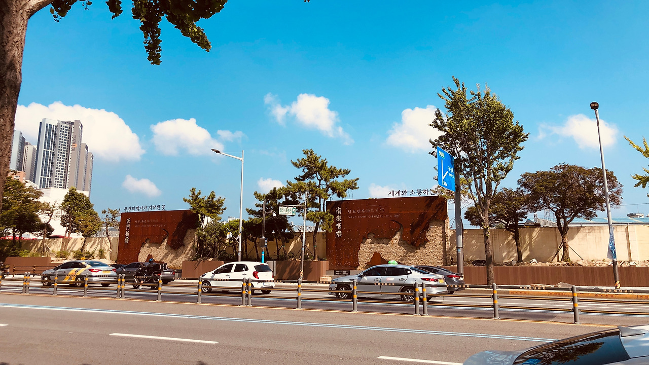 부산역 앞 ‘중앙대로’를 따라 부산의 동구, 남구, 수영구를 거쳐 해운대구까지 걸었다, 이제는 골목이 아닌 큰길로만 걸었더니, 자동차 매연이 목구멍으로 턱턱 들어온다.