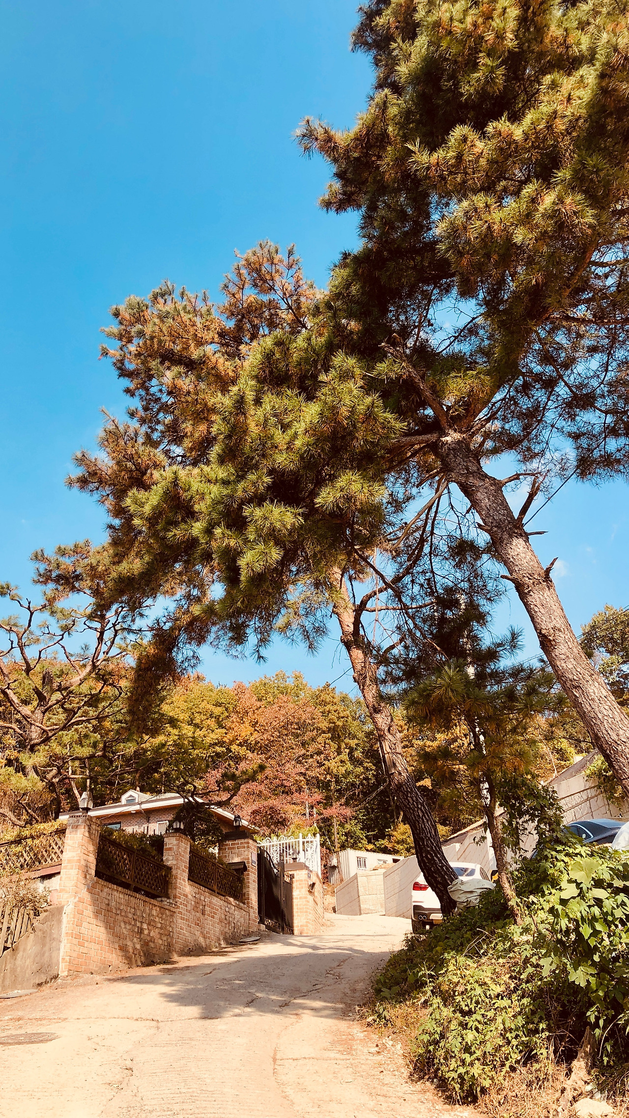 나무 사이로 다니는 회사가 보인다. ‘근무 중 이상 없음’ 사장님께 문자를 보냈더니 ‘미친놈’ 이런다. 조심히 걸으란다. ㅎㅎㅎ