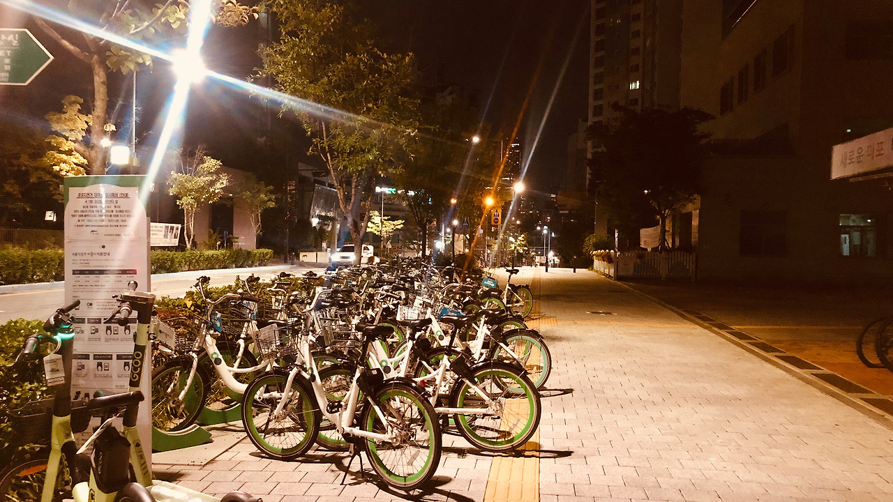 토요일 새벽 1:59분. 진짜 칠흙같은 새벽이다. 일을 마친 ‘따릉이가’ 다음 날을 대기중이다.