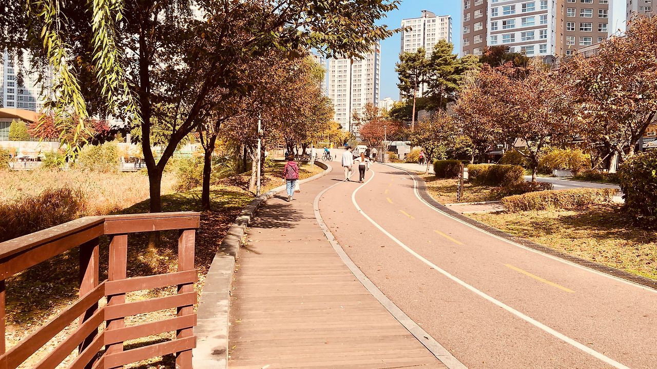 꽤 졸리지만 두 번째 오는 길이라 무난했다. 지난번처럼 분당에서 뻗어 노숙인처럼 의자에 드러눕지도 않았다. 토요일 오전 10시, 드디어 반환점인 ‘광교호수공원’에 도착했다. 하늘은 쾌청했고, 이 정도 컨디션이라면 ‘부산‘까지도 가겠다고 허세를 부렸다. 그때뿐이었다. 지금이 제일 좋은 시간이었다는 것을. 나는 몰랐다. 돌아가는 길, 지금 생각해도 끔찍한 고행길이 기다리고 있었다.
