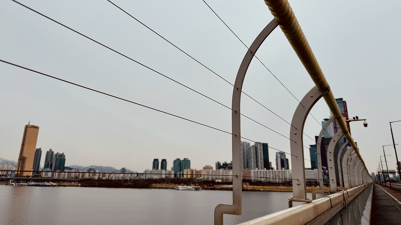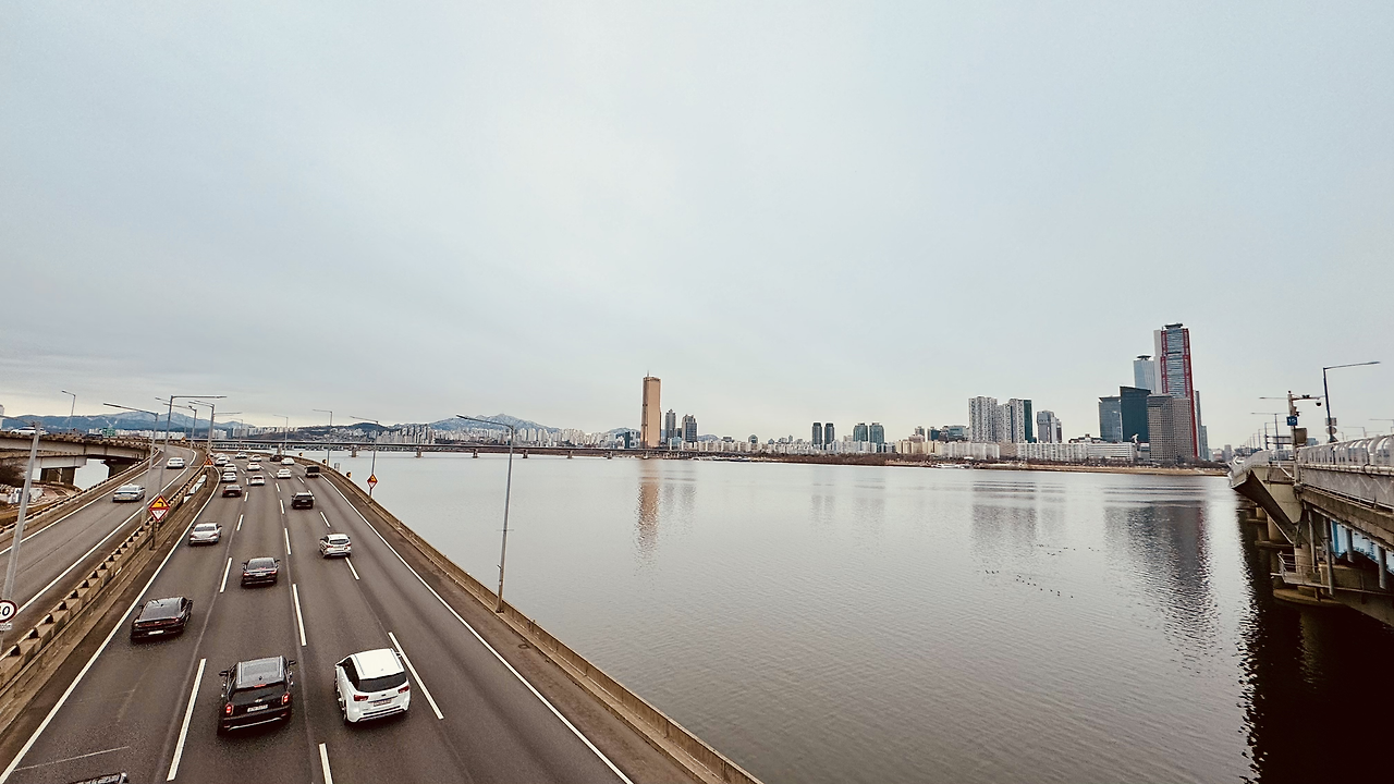 여의도 일대가 훤히 보이는 마포대교에 올라섰다. 날씨는 흐리고 중간에 비가 올 수 있어 걱정은 되었다. 엄청 추운 날씨는 아니지만 혹시 모르니 두툼한 오리털 잠바를 입었다. 이상기온 탓일까? 2024년 1월, 올 겨울은 그리 춥지가 않다. 가끔 변덕을 부려 영하 10도까지 내려갈 때도 있지만, 대체로 영상 온도를 유지하고 있다. 그래서, 흐린날인데도 눈보다는 비가 많이 온다. 오늘도 왠지 비의 하루가 될 듯싶다. 그리고 역시, 우산은 없다.