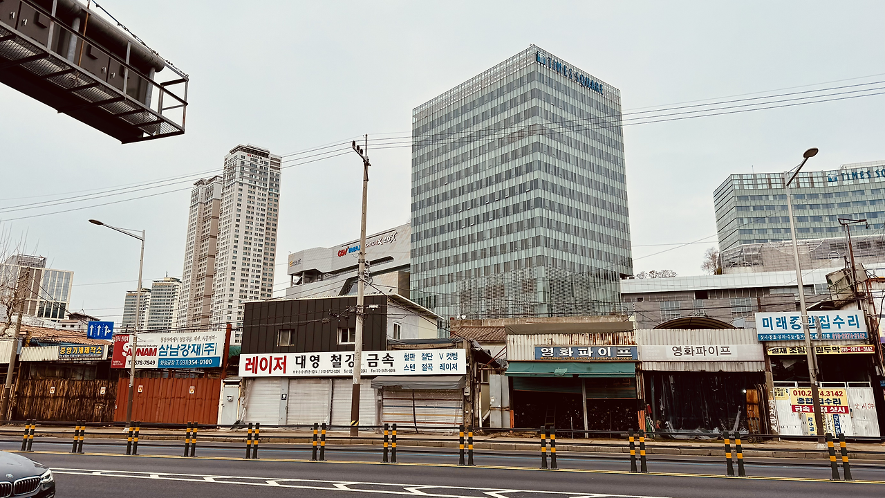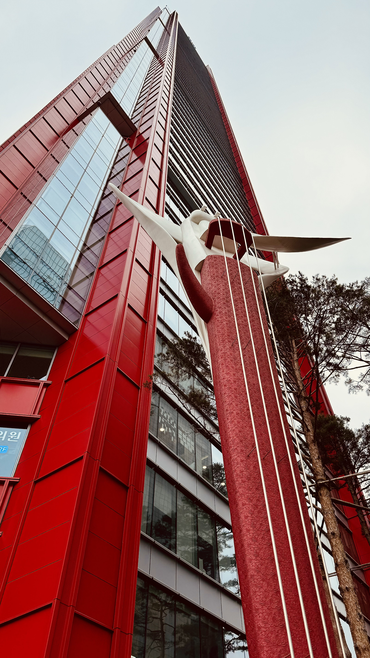 휴일의 여의도는 한층 더 을씨년스럽다. 한두 방울 비가 오더니 이내 눈이 되어 내린다. 붉은색 소매를 자랑하는 ‘파크원(더 현대 서울)’ 건물을 지나 영등포로 향했다. 이미 임무를 마친 따릉이들이 전경련 회관(現 한경협) 앞에서 일렬로 휴식을 취하고 있다. 저 끝에 보이는 광장아파트는 여의도가 개발된 세월만큼이나 오랜 나이를 자랑한다. 생김새도 유니크한 것이 멋스럽다.