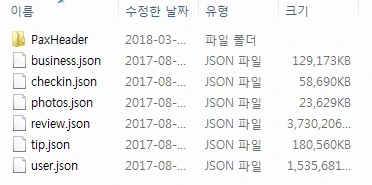 2-1) 일단 다운로드한 'yelp_dataset.tar' 파일을 우클릭하고 압축 풀기를 한다.